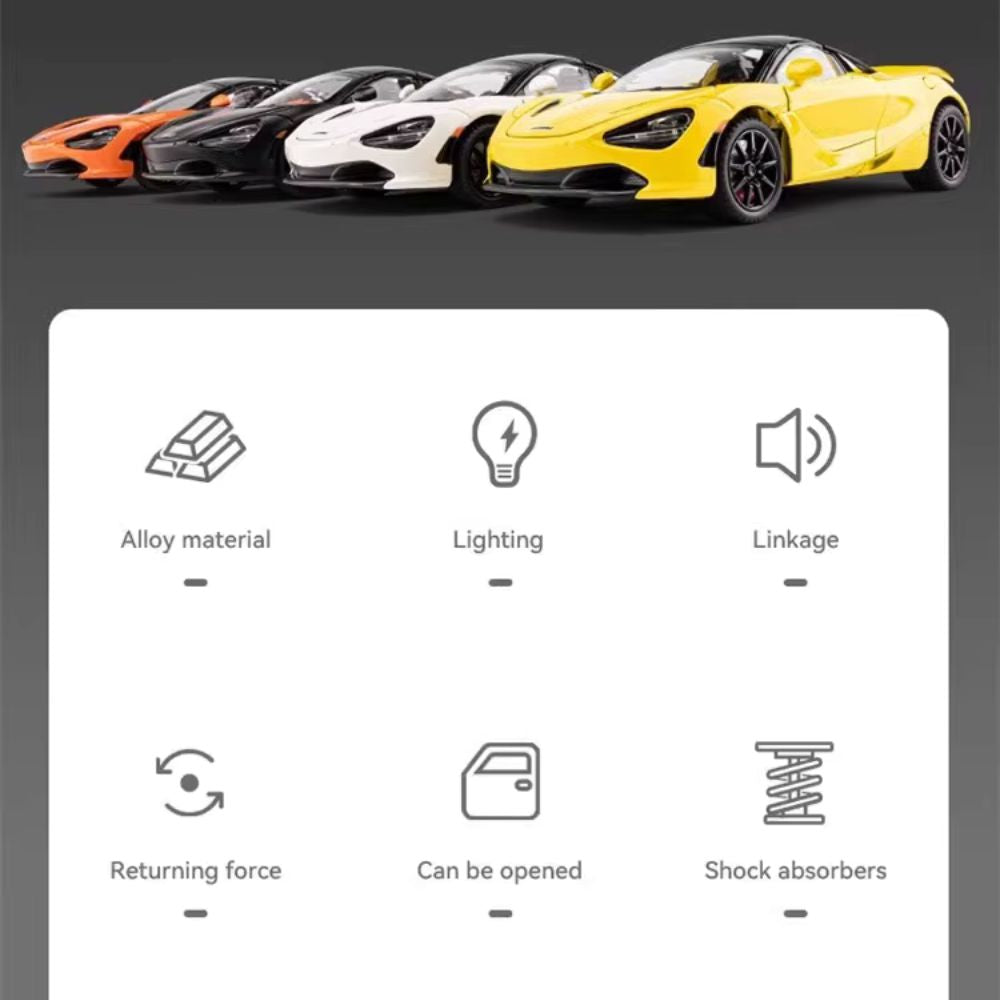 McLaren 720S Modellauto (1:24): Super Sportwagen aus Metall mit Licht & Sound