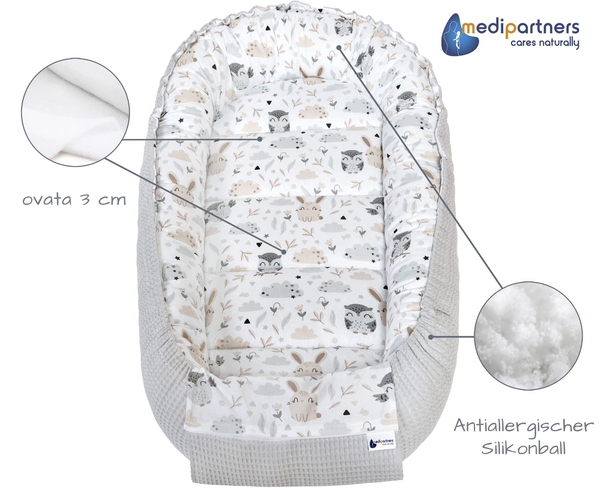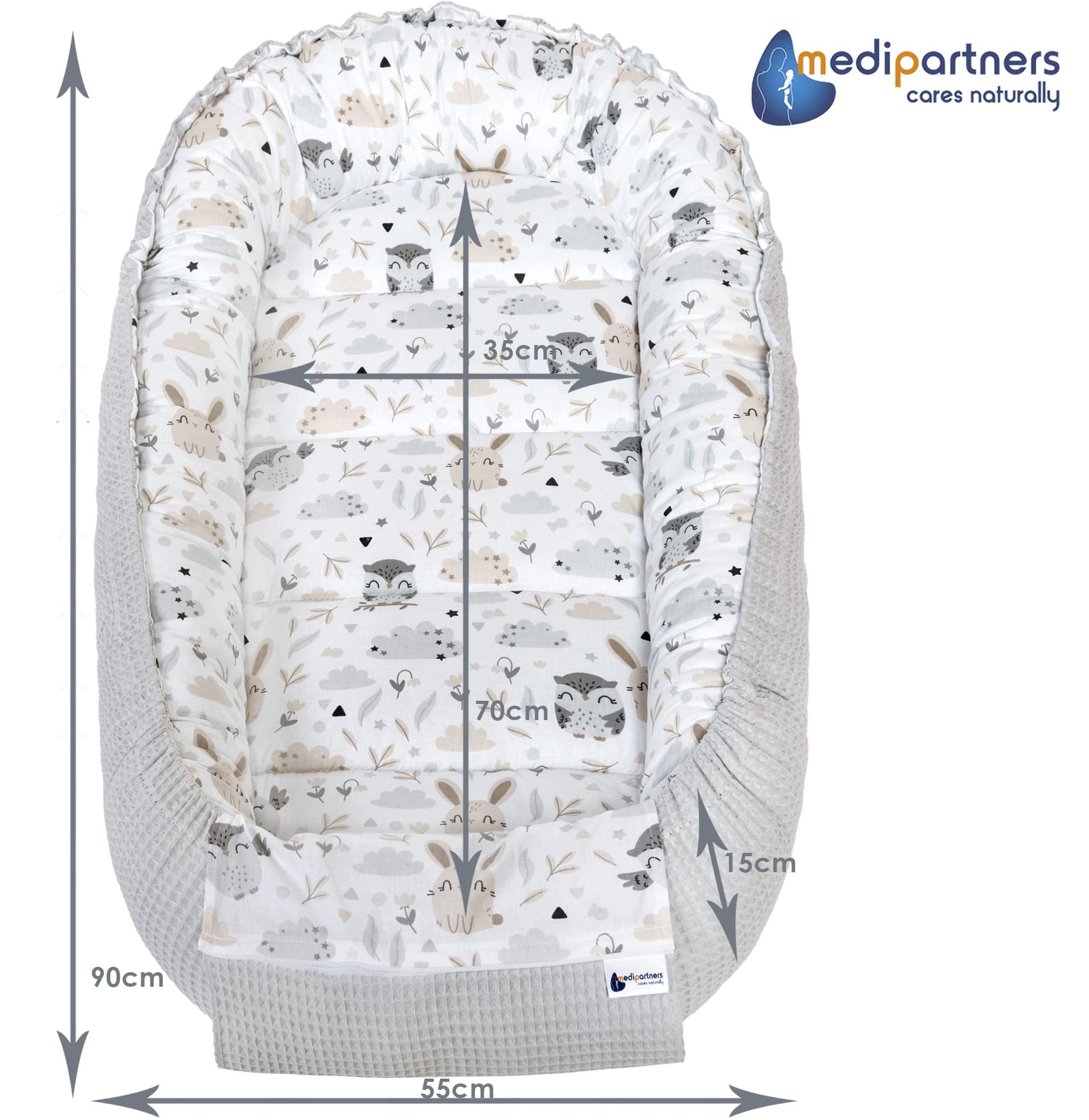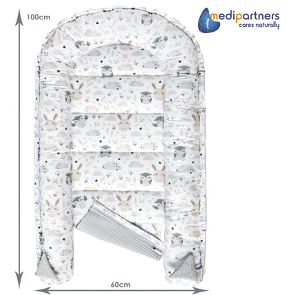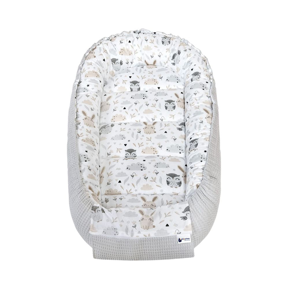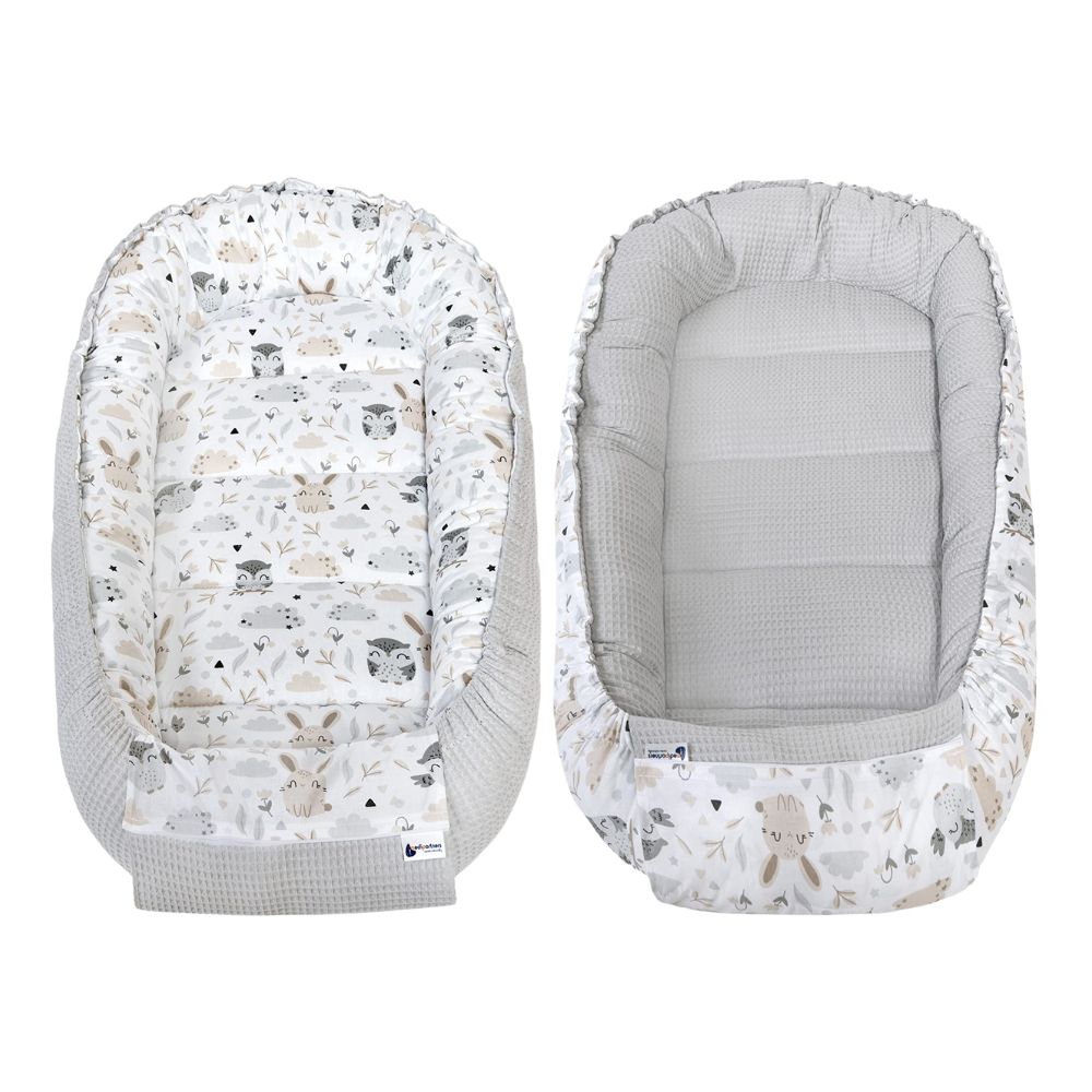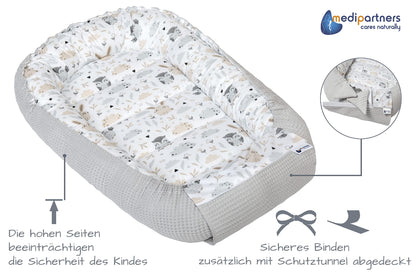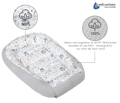 Medi Partners Baby-Nestchen für Neugeborene aus 100% Baumwolle (100x60x15cm): Eulen-Motiv