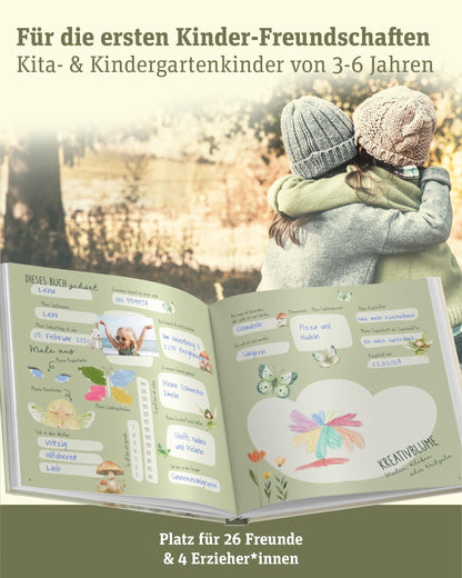 Für Freundschaften, die bleiben: Mit Kontaktdatenfeldern und dicken Seiten, die nicht durchdrücken, sorgt das Buch dafür, dass Freundschaften auch über die Kita hinaus gepflegt werden können.
