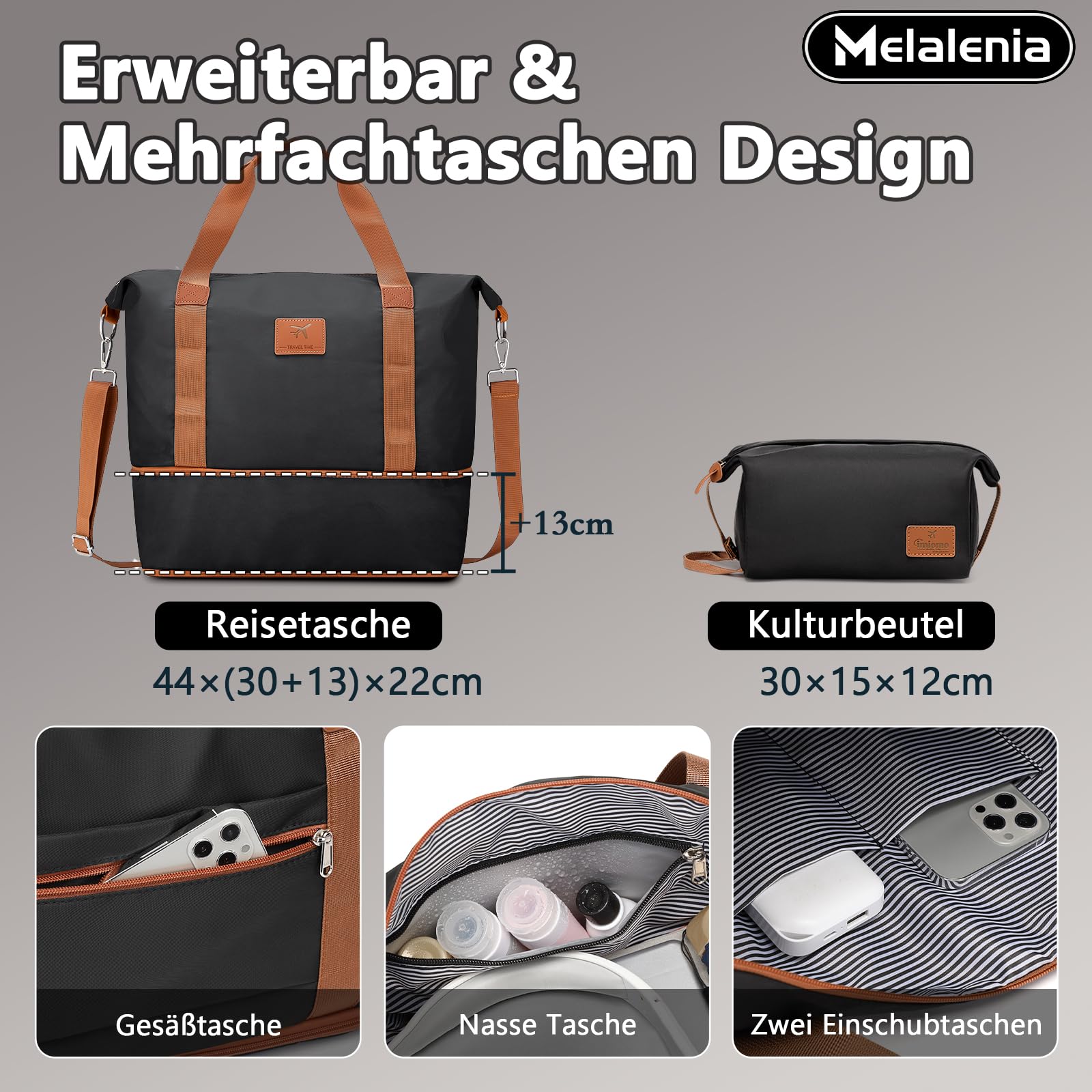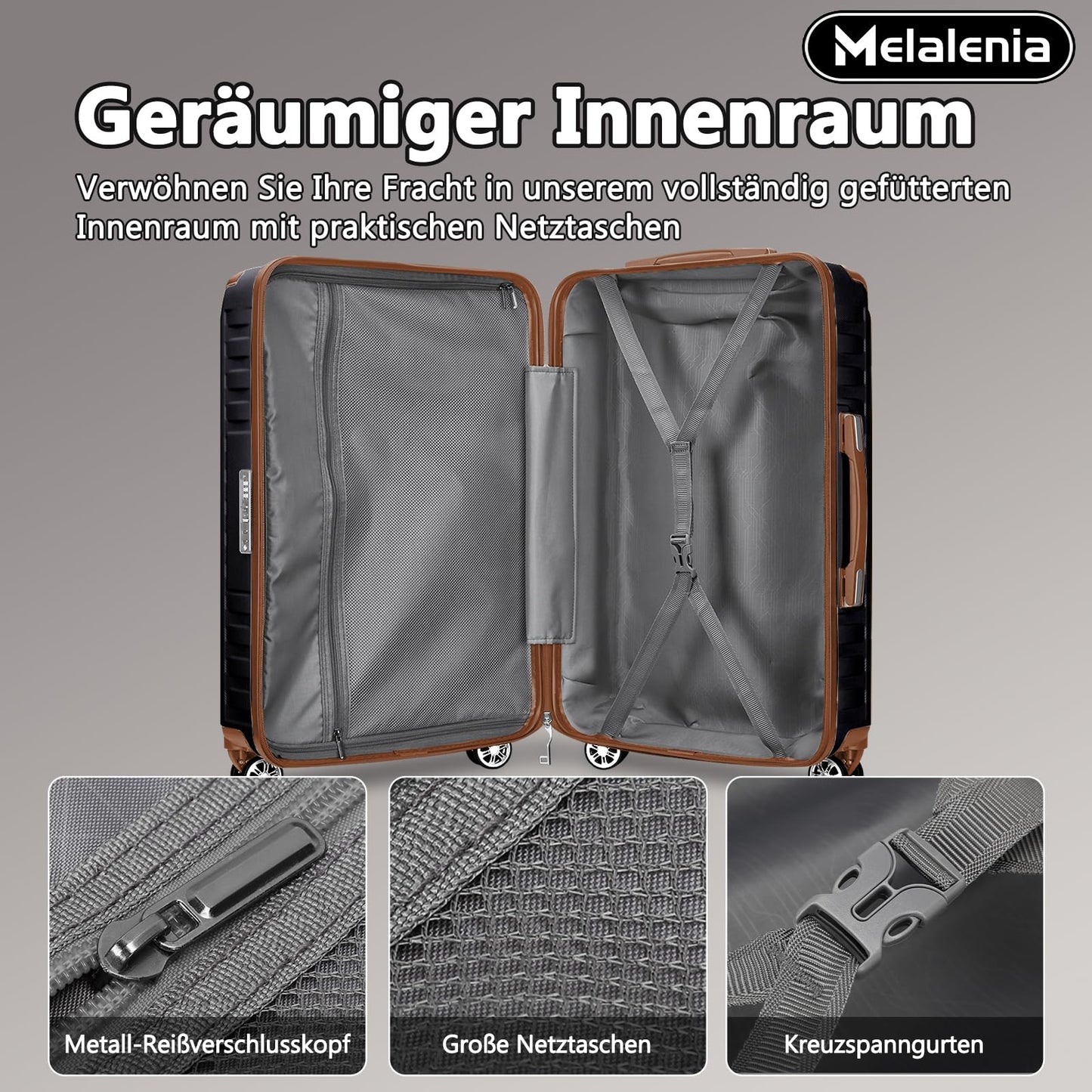MELALENIA Hartschalen Reisekoffer-Set (7-teilig): Super-Leicht, TSA-Schloss | Schwarz