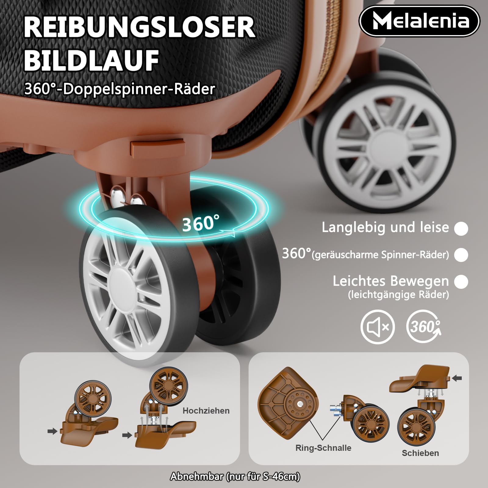 - 360° Doppelrollen - leise, leichtgängig & stabil, Kabinenkoffer mit abnehmbaren Rollen