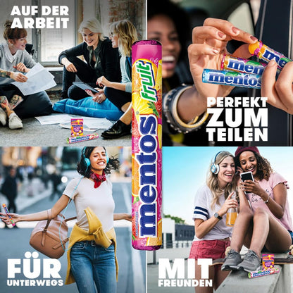- ORIGINAL MENTOS FLAVOUR: Mentos Orange, Erdbeere und Zitrone ist der leckere Kauspaß in Rollenform, Die drei fruchtig-frischen Sorten sind nach dem Zufallsprinzip sortiert und garantieren kunterbunte Abwechslung