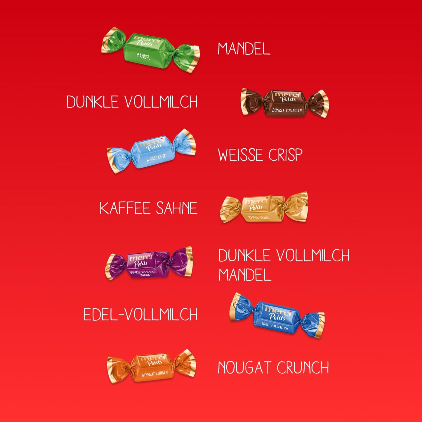 Feine Pralinenvielfalt für jeden Moment - die merci Petits Chocolate Collection vereint sieben köstliche Sorten in einer großzügigen 1 kg-Packung. Ob als süße Geste, zum Teilen im Büro oder für den kleinen Genussmoment zwischendurch - merci Petits stehen für Wertschätzung mit Geschmack.
