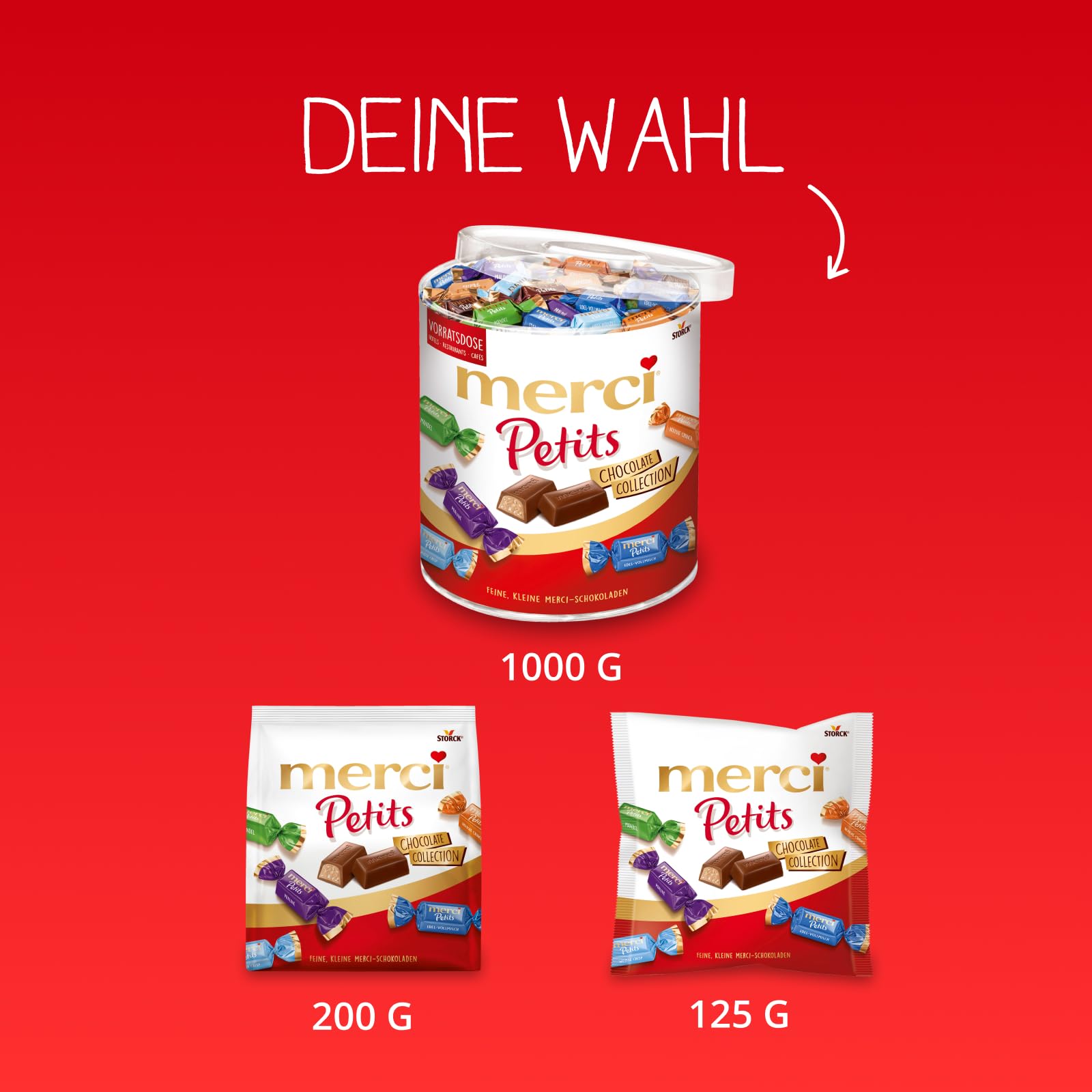merci Petits Chocolate Collection (1kg): Mix aus Schokoladen-Spezialitäten in praktischer Runddose
