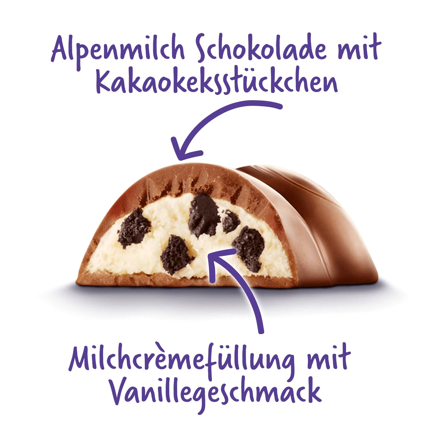 Leckerer Genuss: Kombination aus zartschmelzender Schokolade, Kakaokeks-Stücken (15%) und cremiger Milchfüllung (35%)