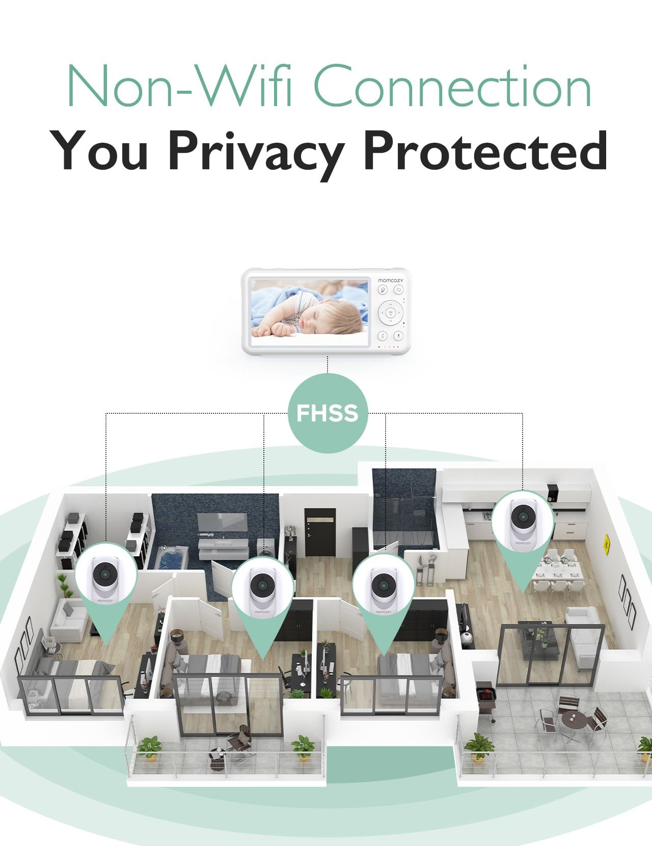 Das Momcozy BM01 Video-Babyphone bietet Ihnen eine sichere, stabile und flexible Überwachung Ihres Babys - ganz ohne WLAN oder App. Ausgestattet mit einem 5-Zoll-Display und einer 1080P-HD-Kamera sehen Sie Ihr Kind jederzeit in klarer Bildqualität - ob bei Tageslicht oder dank Infrarot-Nachtsicht auch bei Dunkelheit.
