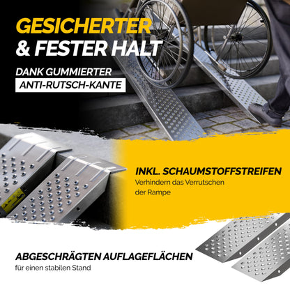 Stabil & durchdacht: 160cm Länge, 22,5cm Breite pro Rampe, mit seitlichen L-Schienen (4,5cm)