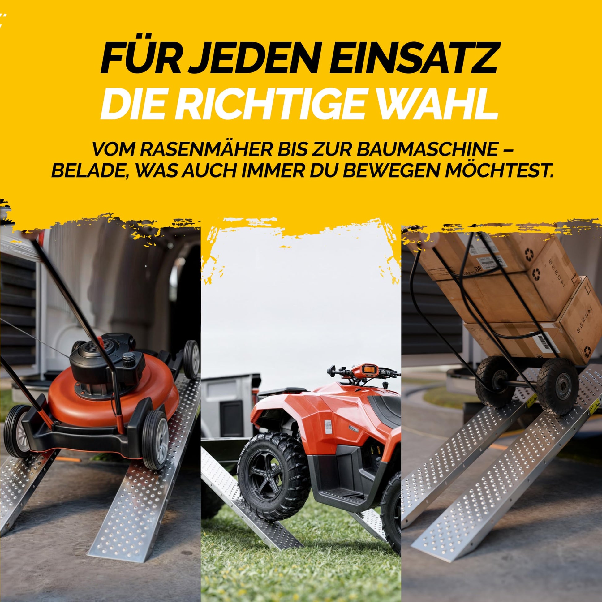 Ideal für Motorräder, Quads, Rasenmäher, Anhänger oder als mobile Treppenrampe.