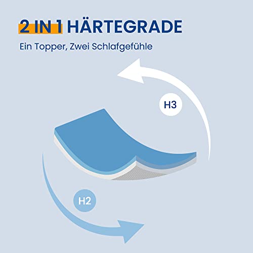 - 2 Härtegrade in einem: Weicher H2 Gel-Viscoschaum & fester H3 Komfortschaum - individuell wendbar