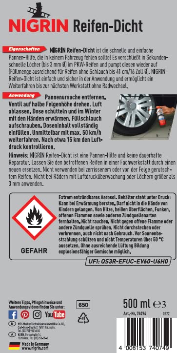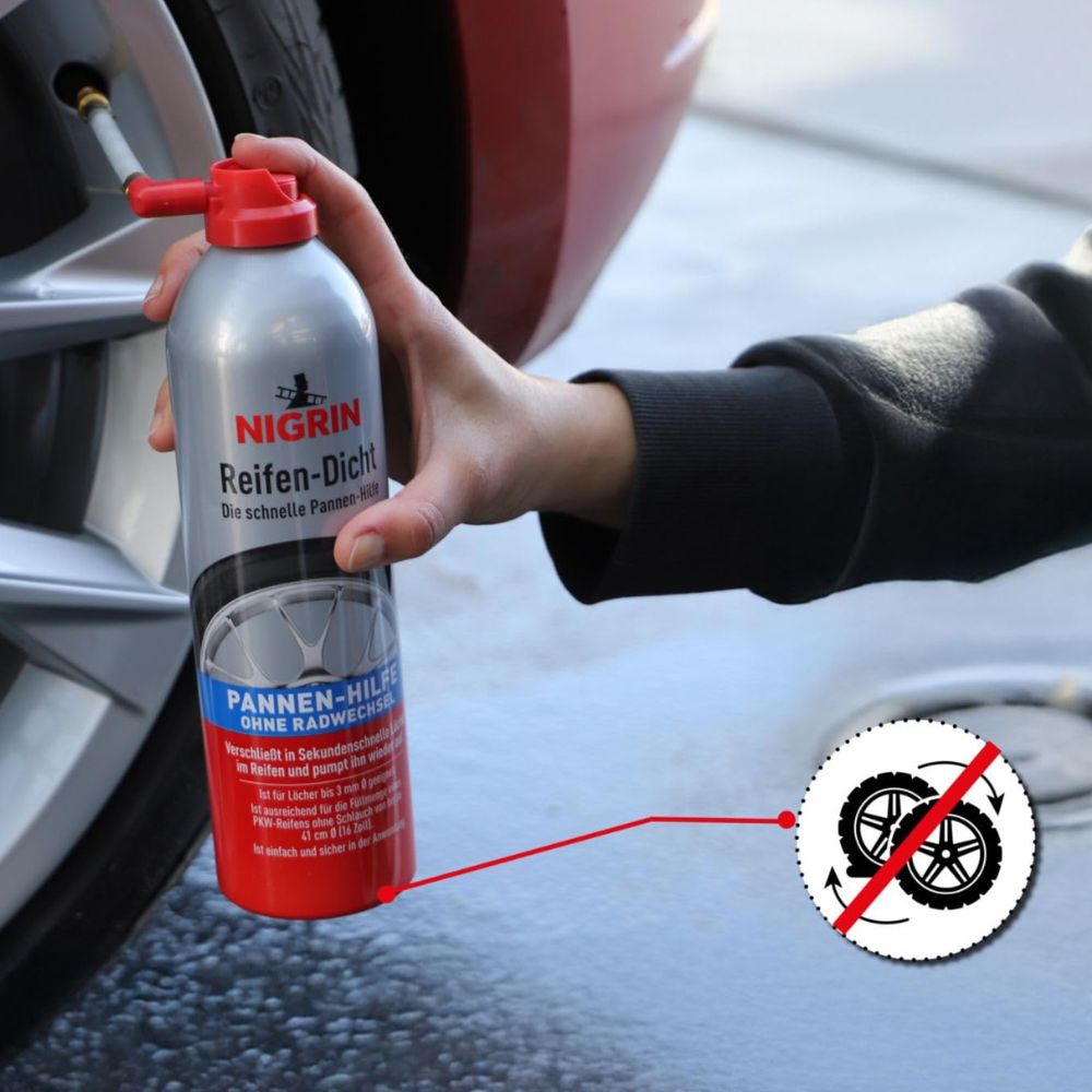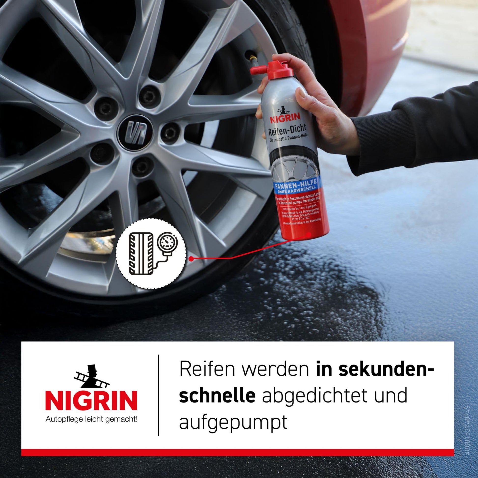 NIGRIN Reifendicht (500ml): Sofortige Pannenhilfe repariert Löcher im Handumdrehen