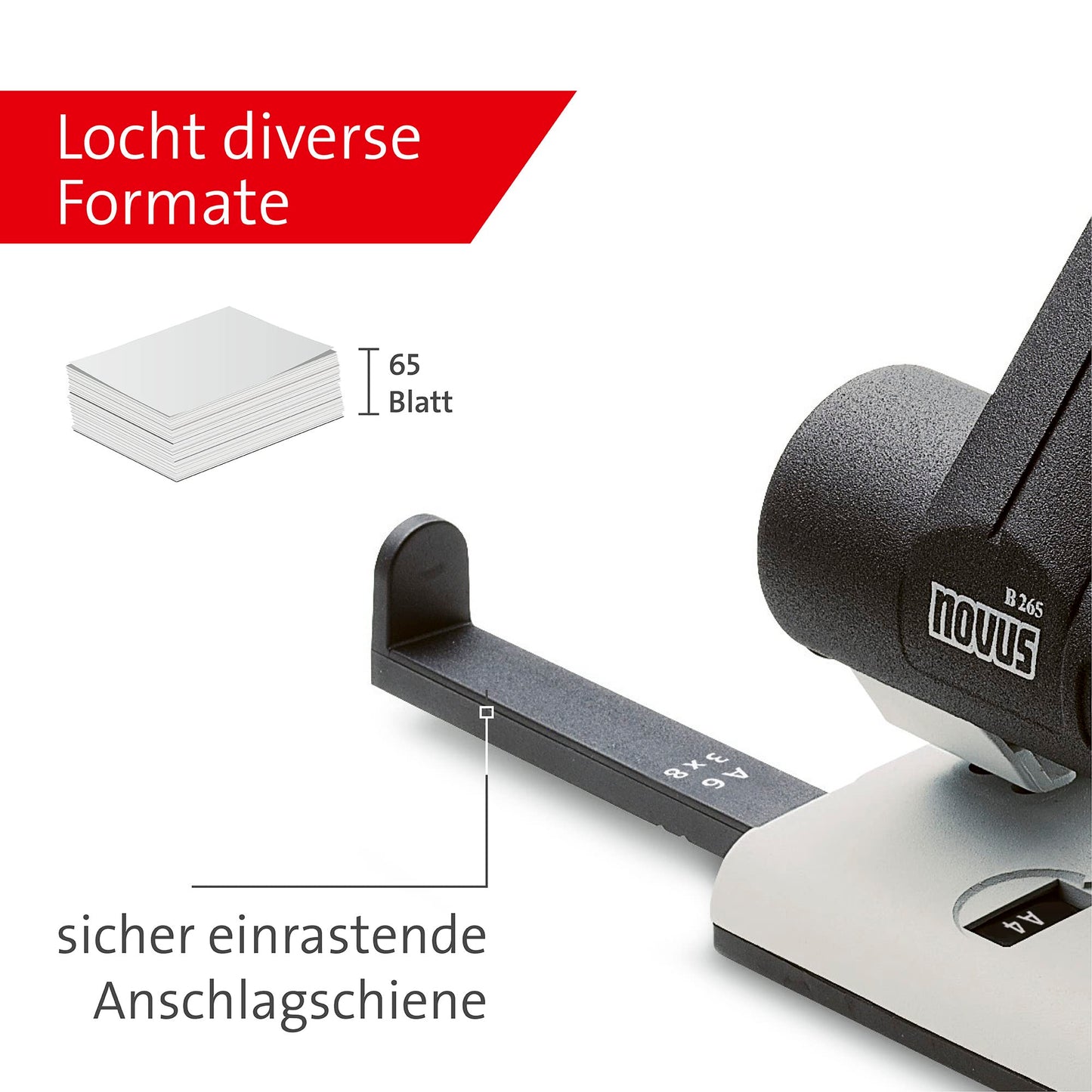 Novus (B 265) Registraturlocher für das Büro in Farbe Grau-Schwarz