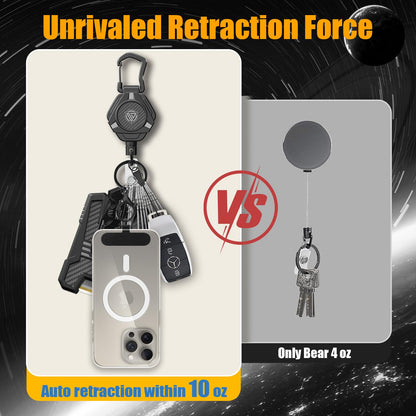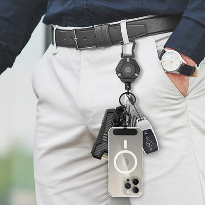 Robuster & stilvoller Schlüsselhalter mit Magnetkraft, Carbon-Look und ausziehbarem Edelstahlseil