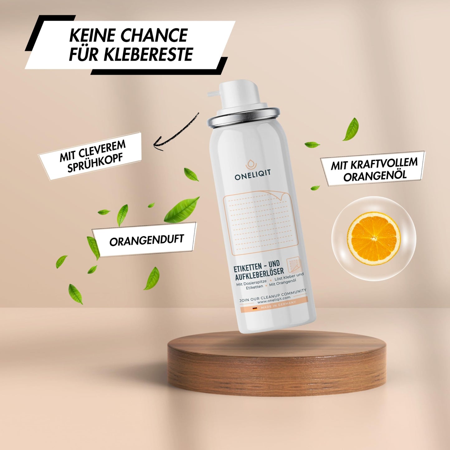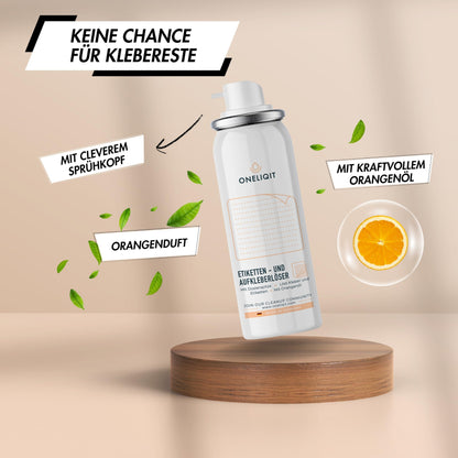 ONELIQIT® Etikettenentferner mit Orangenöl (200ml): Aufkleber, Vignetten, Klebstoffen