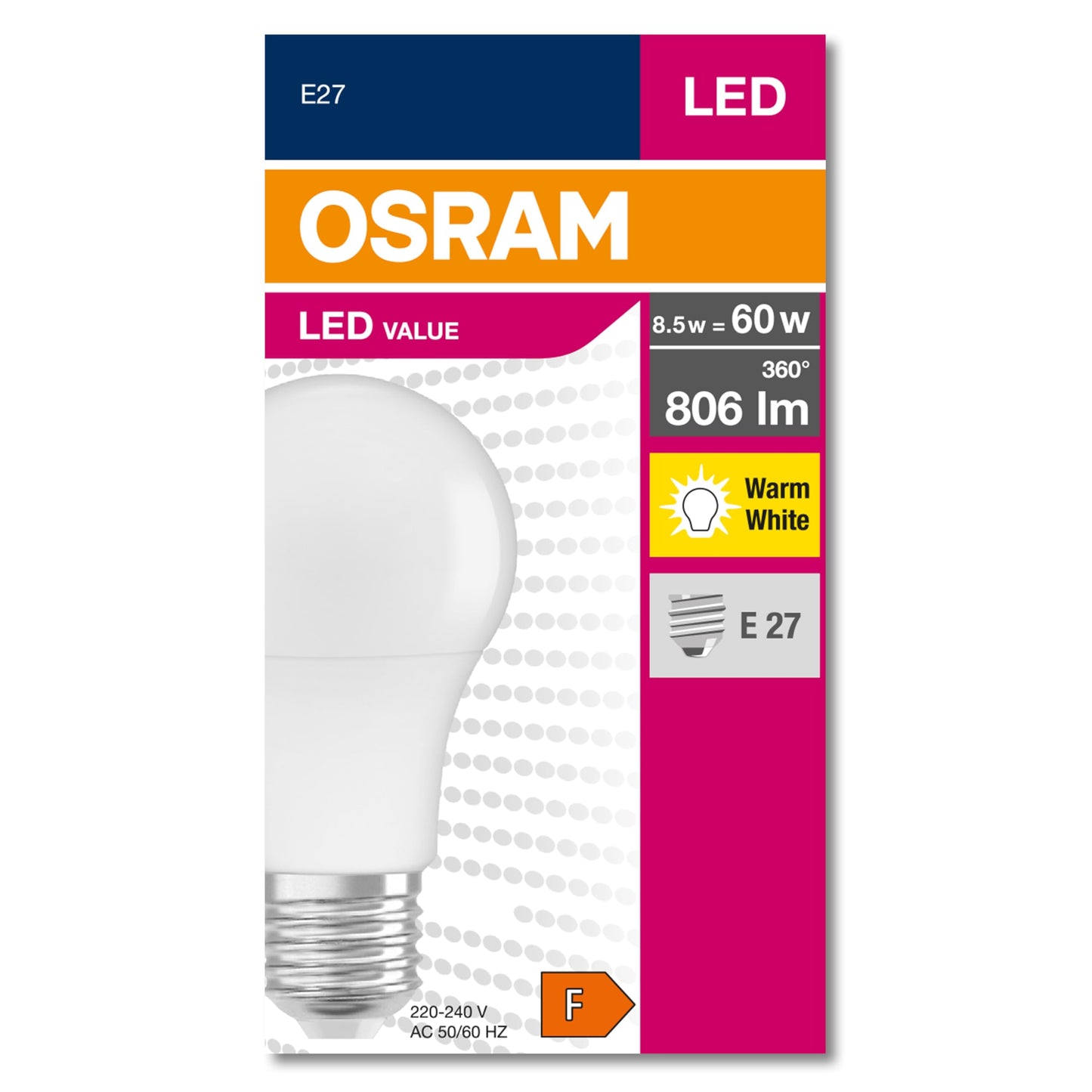 OSRAM LED mit E27 Sockel (8,5W-Warmweiss: 2700K): Matt 10er-Pack