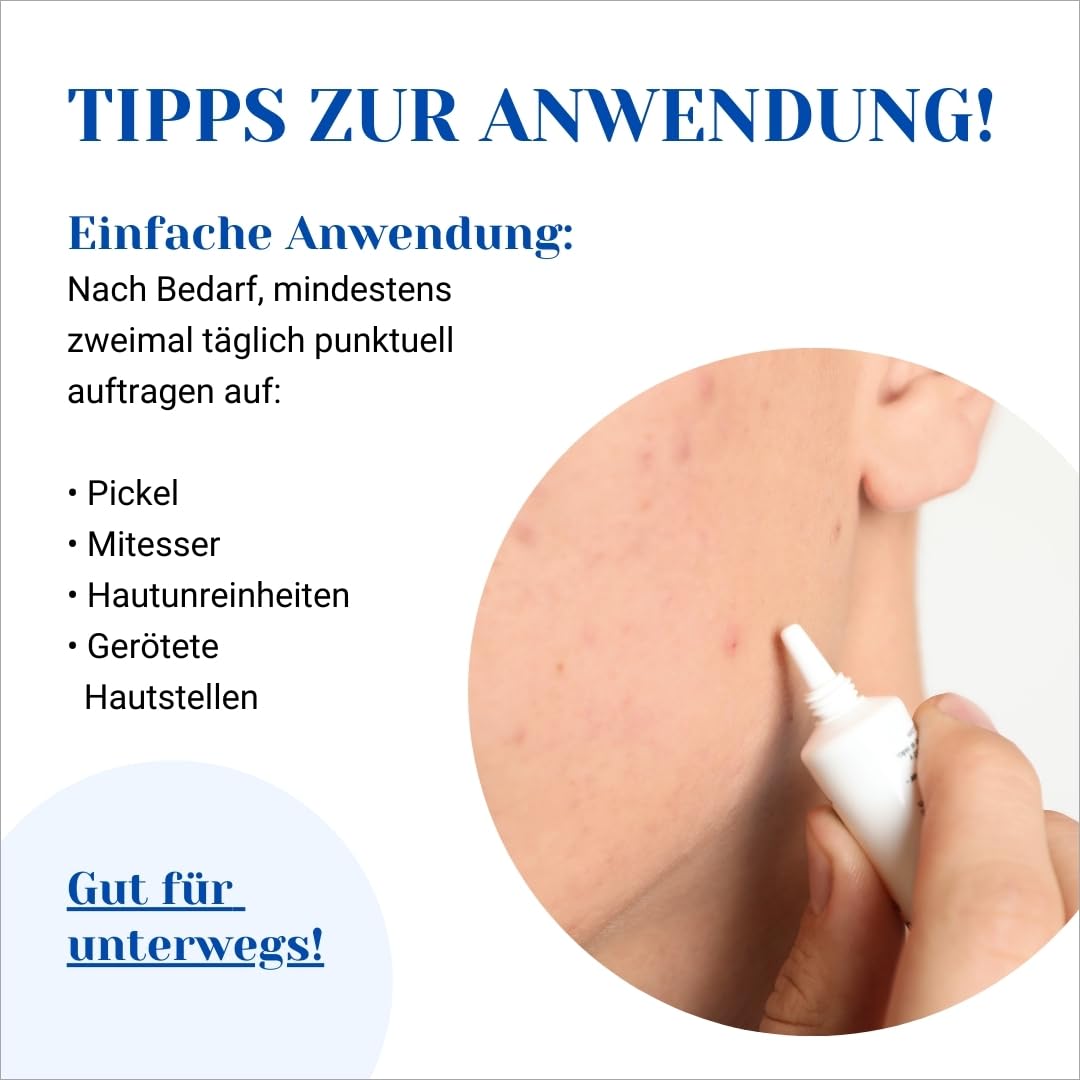 - Gezielte Behandlung: Wirkt schnell bei Pickeln und Unreinheiten.