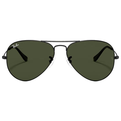 Die Ray Ban RB3025 ist ein legendäres Modell mit G-15 Graugrün-Kristallgläsern, die für natürliche Farben und höchste Klarheit sorgen. Der glänzend schwarze Metallrahmen überzeugt durch seine schlanke Form und verstellbare Nasenpads für optimalen Sitz.