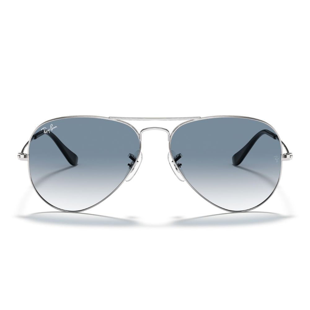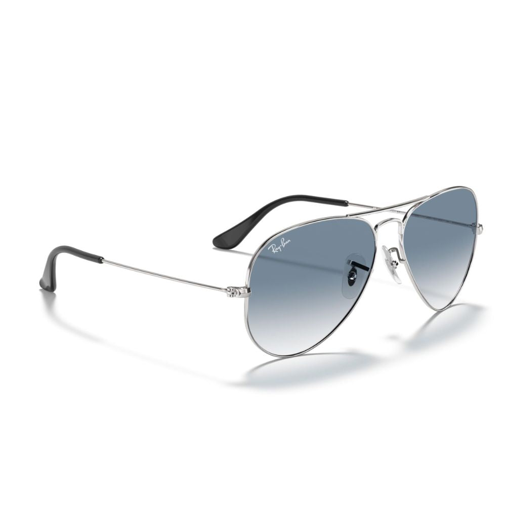 Ray Ban 'Aviator' Sonnenbrille für Herren: Silbernes Gestell, Gläser mit blauem Farbverlauf