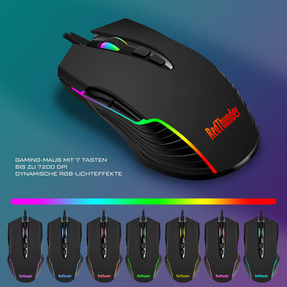 RedThunder K10 Gaming Tastatur und Maus Set, QWERTZ DE-Layout, Metallplatte und Handballenauflager,RGB-Hintergrundbeleuchtung und 7D mit Ergonomische für PC Gamer(Schwarz)