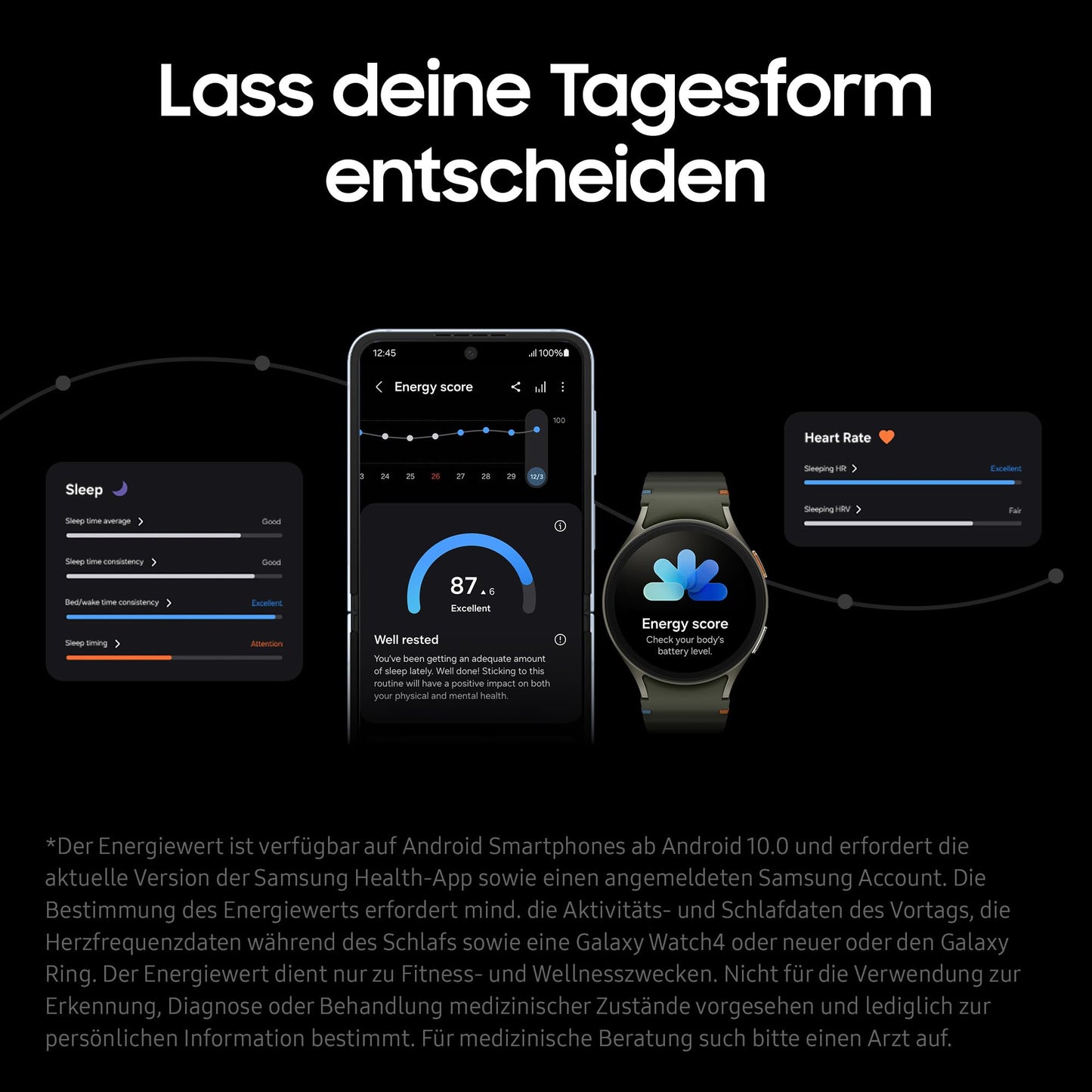 Die Galaxy Watch7 vereint intelligente Technologie mit elegantem Design. Ob Schlafanalyse, Fitnesstraining oder Gesundheitsüberwachung - diese Smartwatch hilft dir, deinen Alltag bewusster und aktiver zu gestalten.