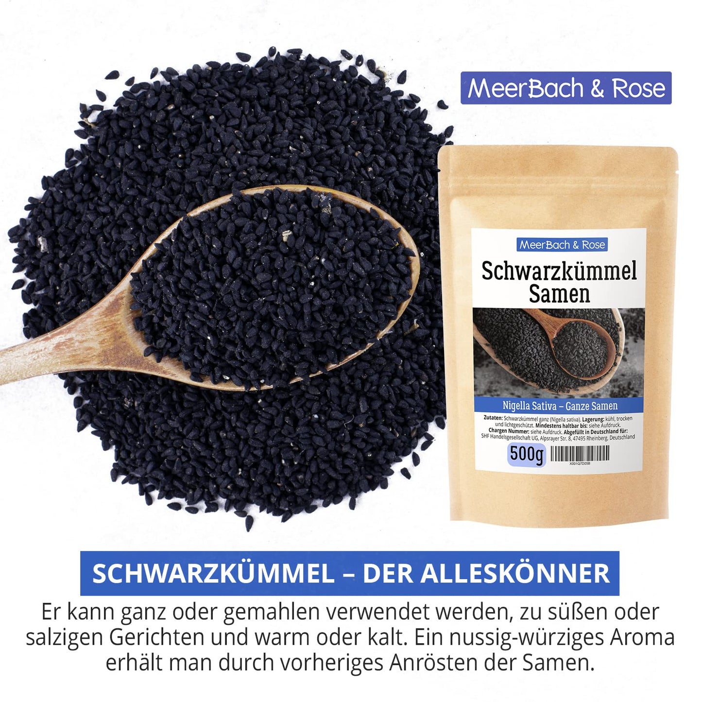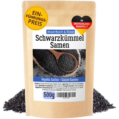 Genieße die aromatische Vielfalt der MeerBach & Rose Schwarzkümmelsamen - von Hand in Deutschland verpackt, vielseitig einsetzbar und reich an wertvollen Nährstoffen.
