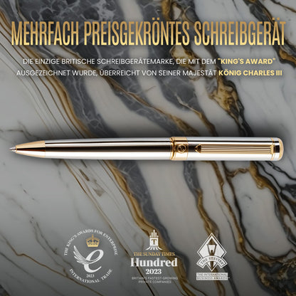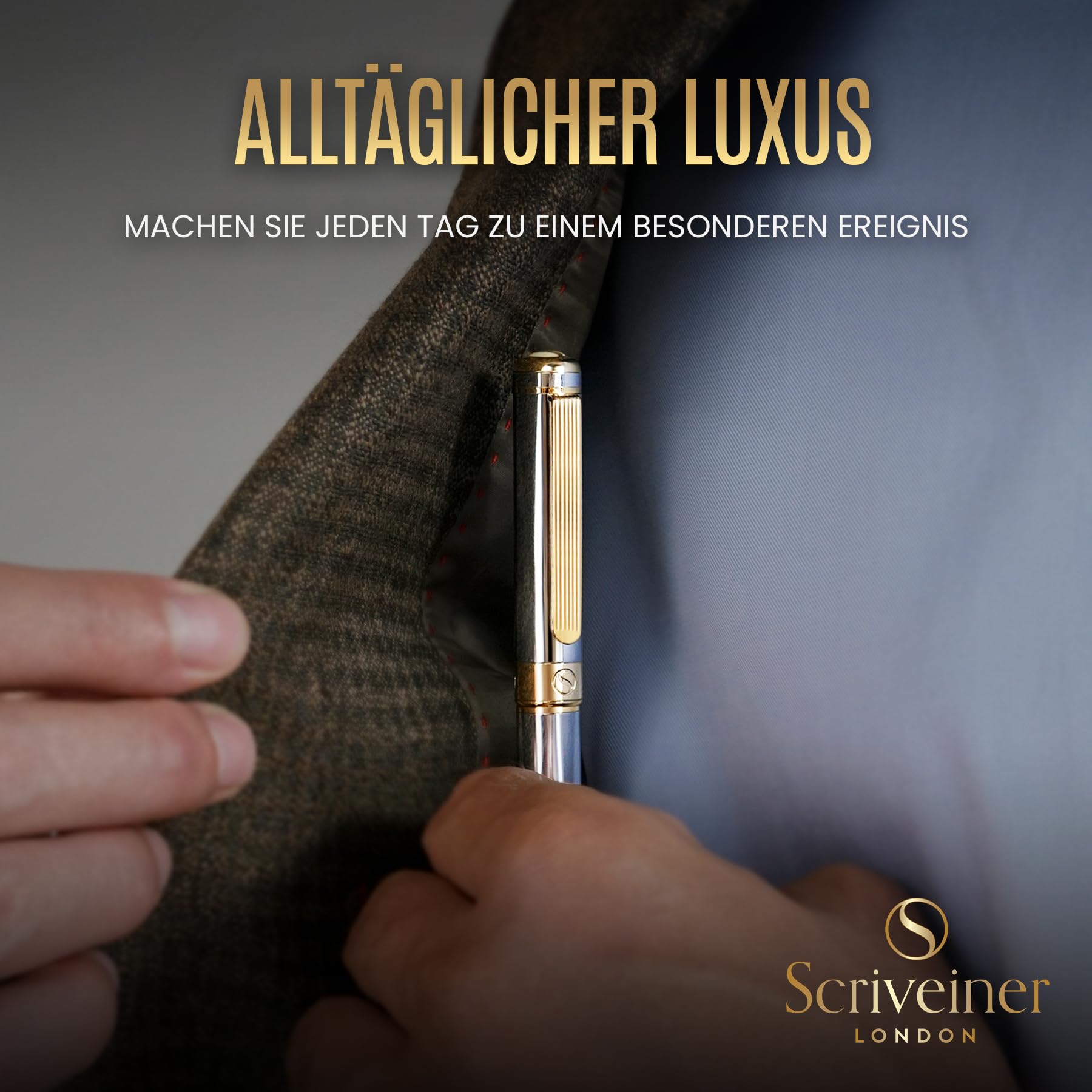 - ★ GENIEßEN SIE DIE BEQUEME HANDHALTUNG EINES LUXUS KUGELSCHREIBERS – Der silber lackierte Messingkugelschreiber mit luxuriösen echtvergoldung von Scriveiner vereint Premium-Qualität mit der subtilen Eleganz einer britischen Boutique-Marke.