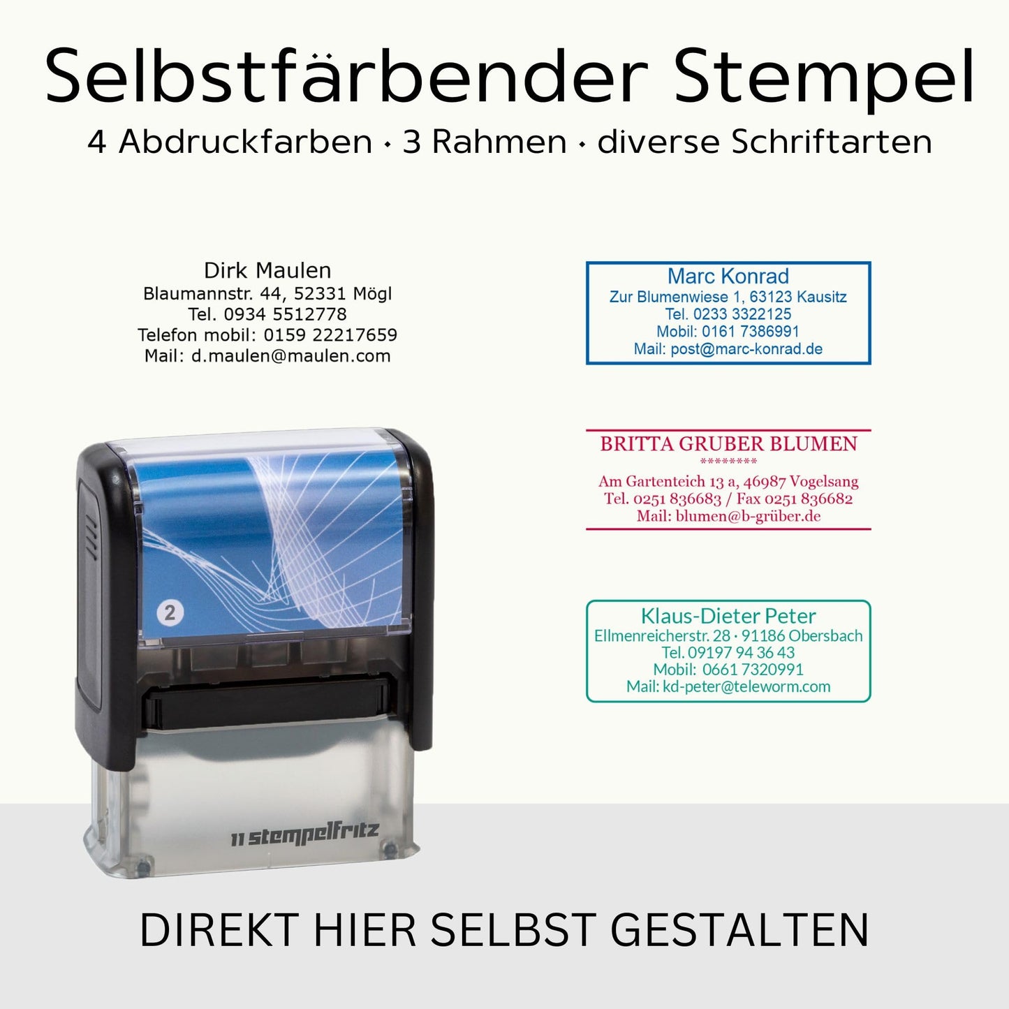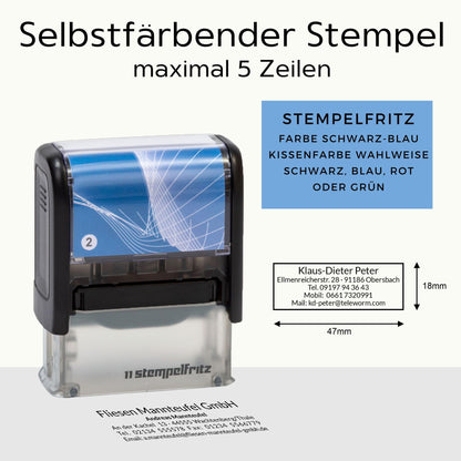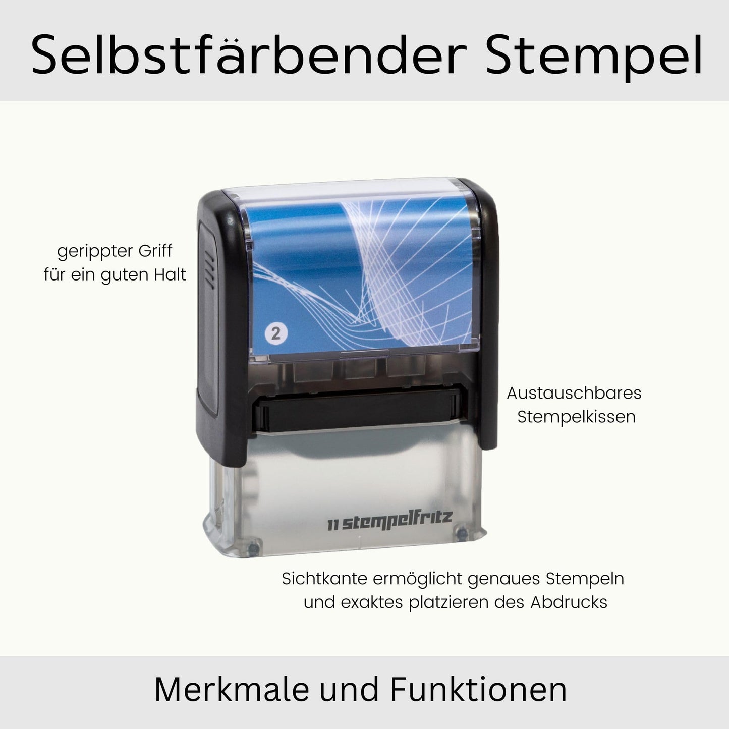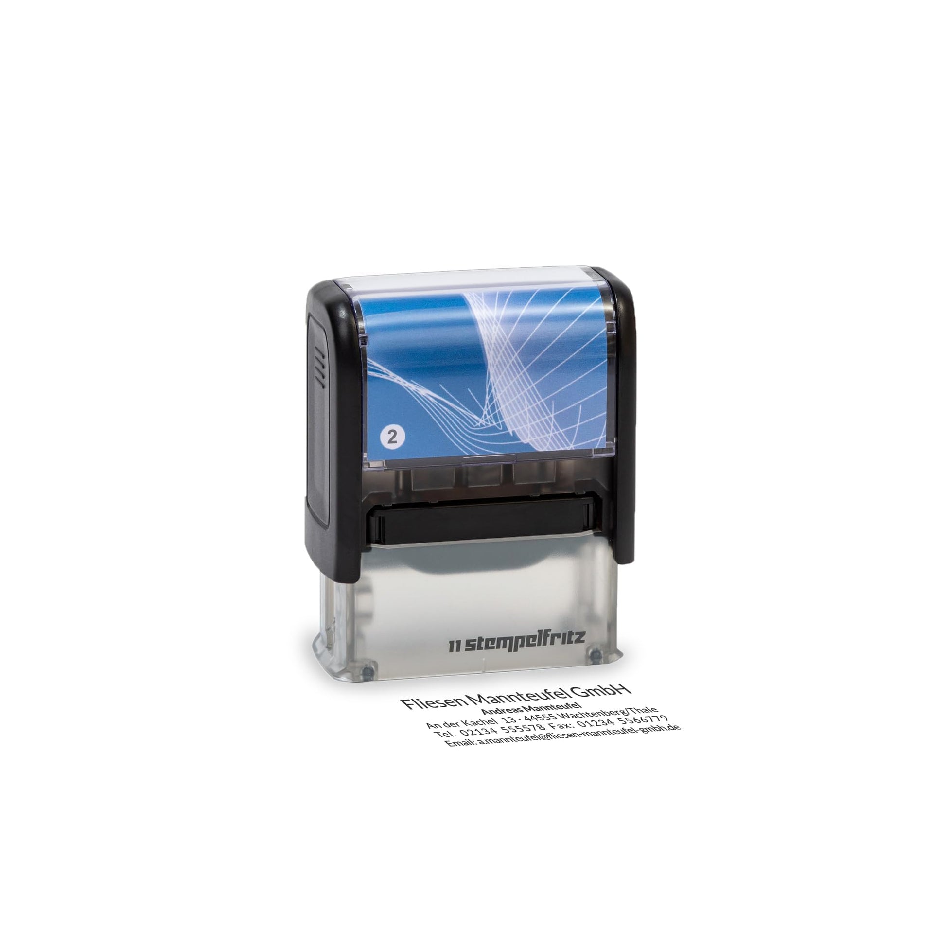 stempelfritz personalisierter Firmenstempel mit Gehäuse in Schwarz-Blau