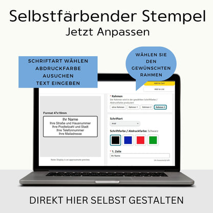 Praktisch, kompakt und vielseitig: Der stempelfritz Textstempel eignet sich ideal für Firmen, Kleinunternehmer, Lehrer oder Privathaushalte. Gestalten Sie bis zu 5 Zeilen individuellen Text in Ihrer Wunsch-Schriftart und -Rahmen direkt über „Jetzt anpassen“.