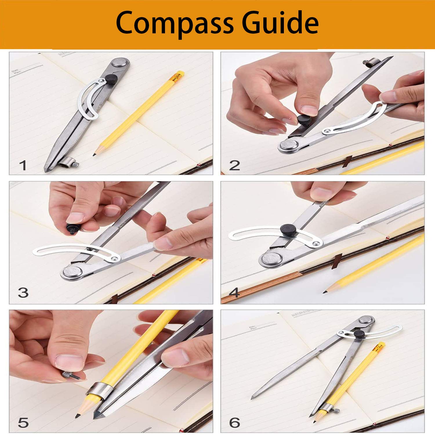 - Komplettset: Enthält 1 Rundzirkel (20cm / 8 Zoll) + 5 Ersatzbleistifte
