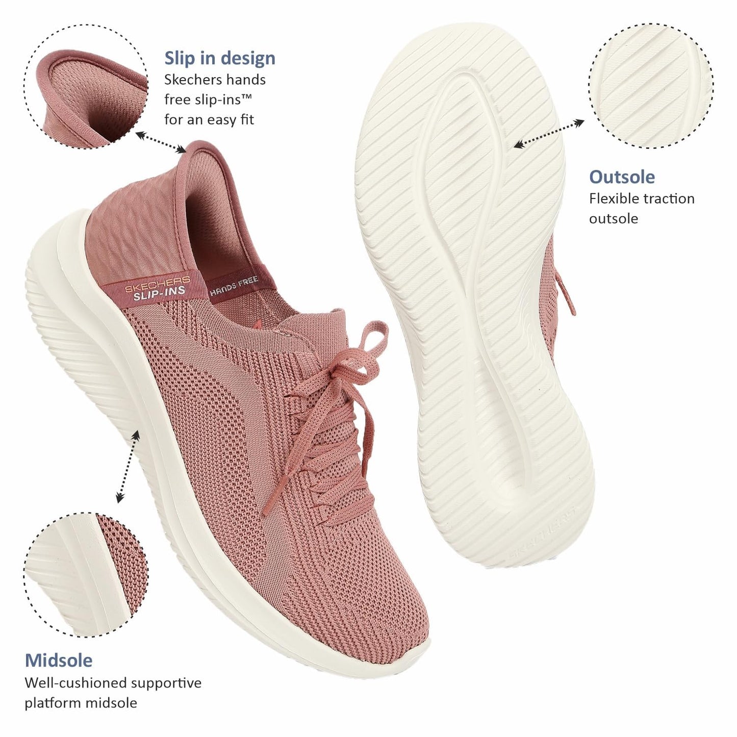 Skechers 'Ultra Flex 3.0 Brilliant Path' Damen Sneaker (Mauve Knit/Pink Trim)