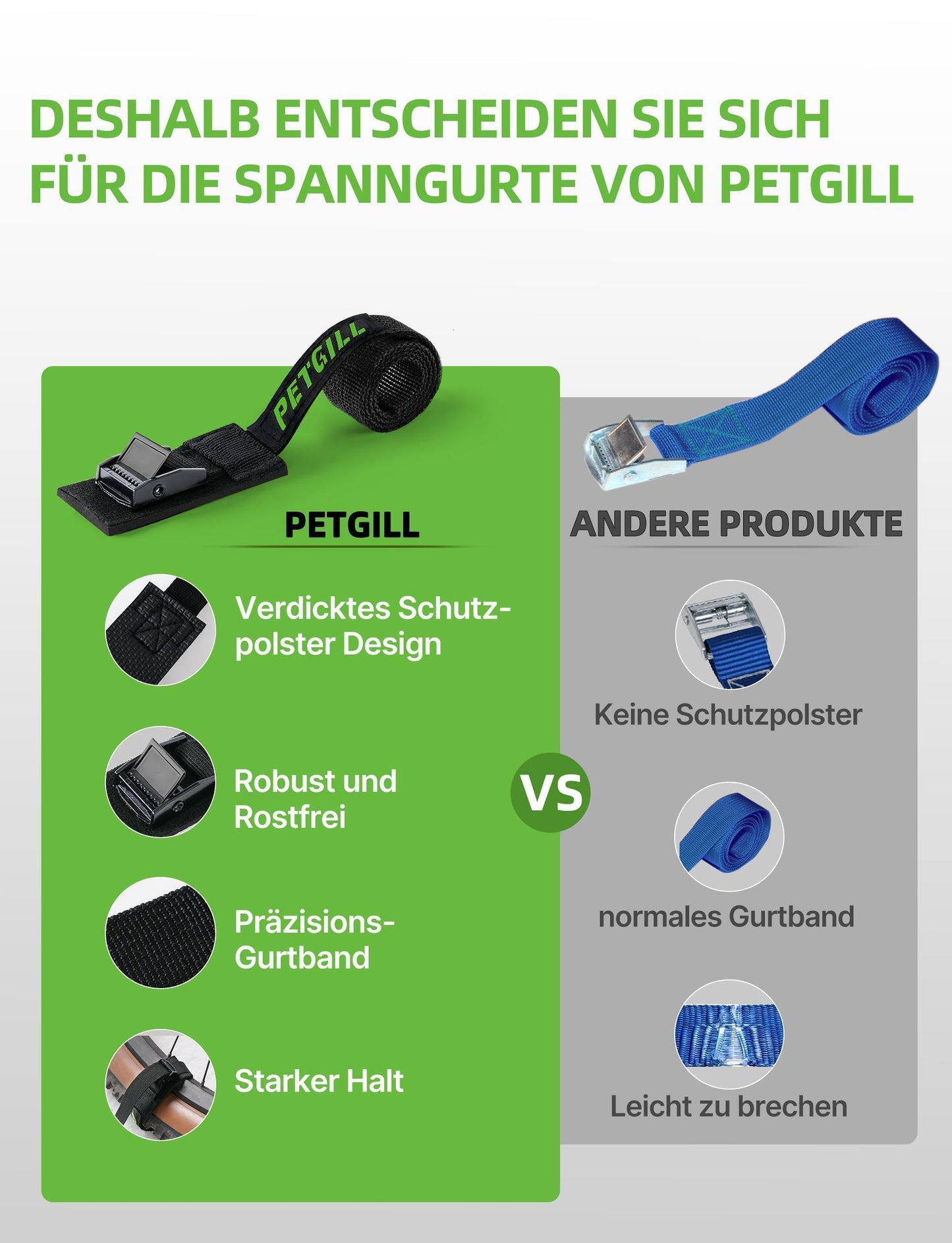 4x Spanngurte mit Polsterung für alle Fahrradträger (40cmx20mm): 200kg Belastbarkeit für Dachträger