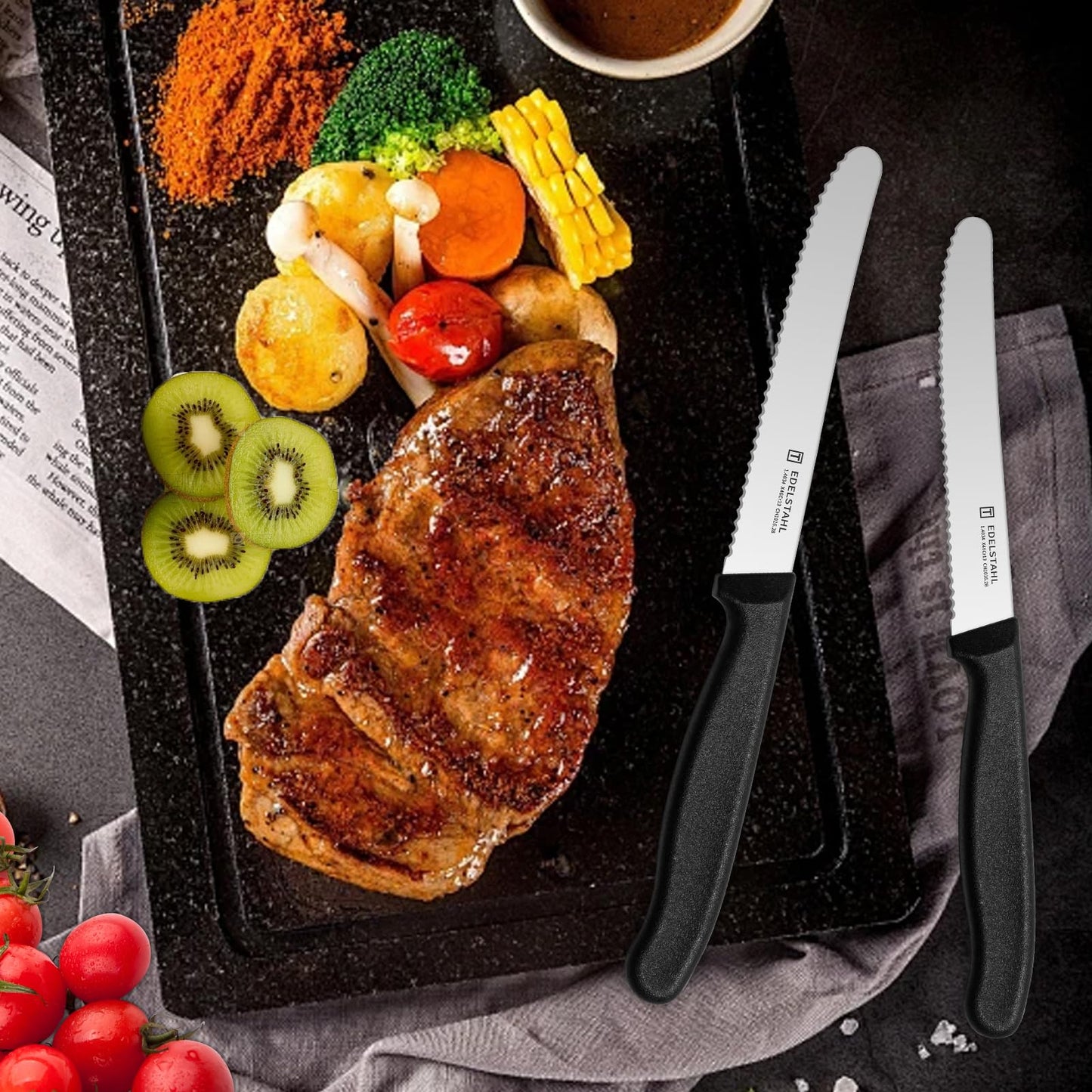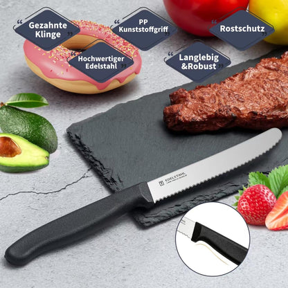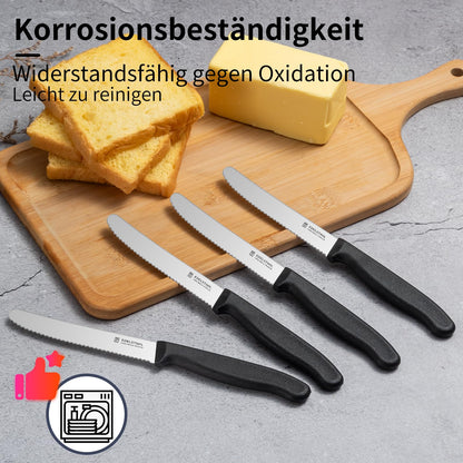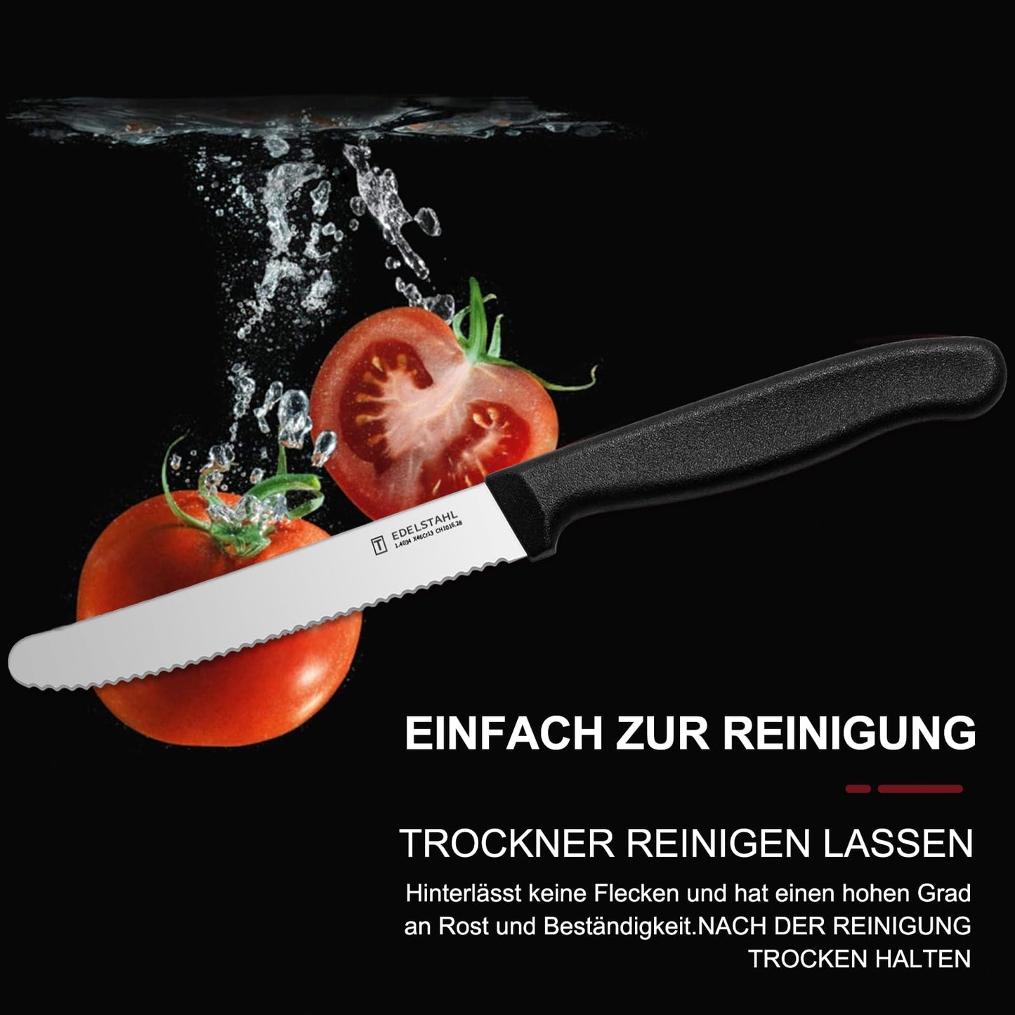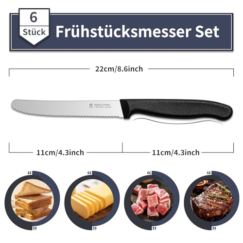 Hochwertiges Edelstahl Wellenschliff Frühstücksmesser (6 Stück) mit Kunststoffgriff: Spülmaschinenfest