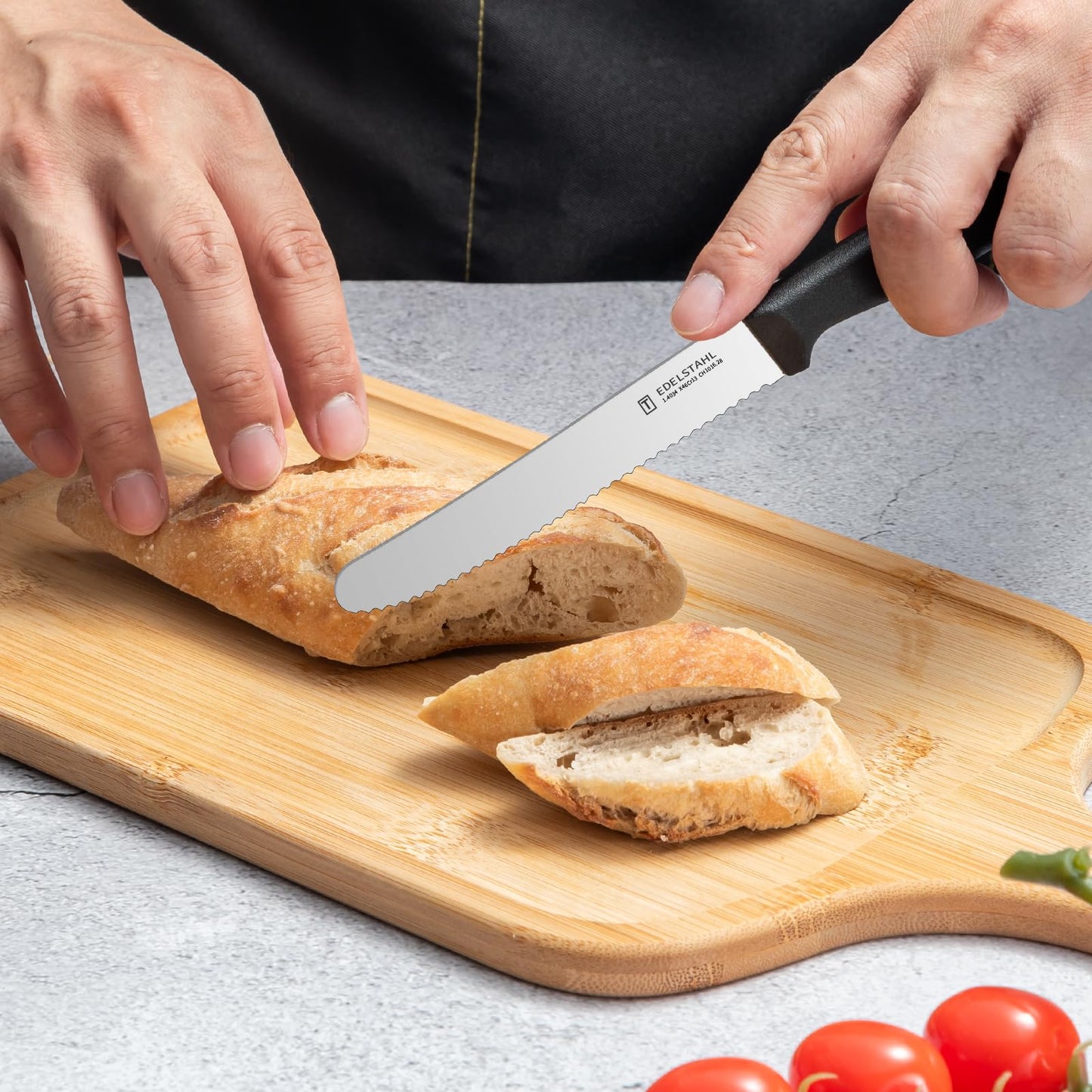 - Scharfe Klinge: Wellenschliff und doppelseitige Politur ermöglichen müheloses Schneiden von Brot, Obst, Gemüse und Fleisch.