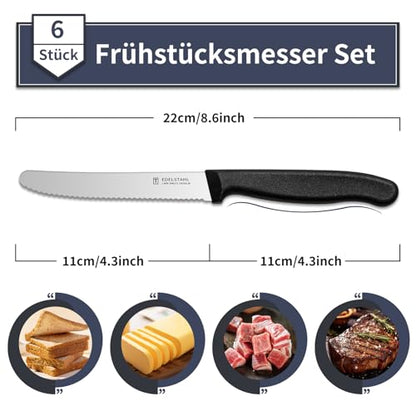 - Komplettes Set: Enthält 6 Frühstücksmesser (Gesamtgröße: 8,66 inch, Klingenlänge: 4,33 inch, Gewicht: 26,8 g je Messer) - perfekt ausbalanciert für Anfänger und Profis.