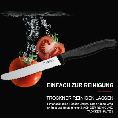 - Vielseitige Verwendung: Perfekt als Tafelmesser, Brotmesser, Tomatenmesser, Vespermesser oder Jausenmesser geeignet.