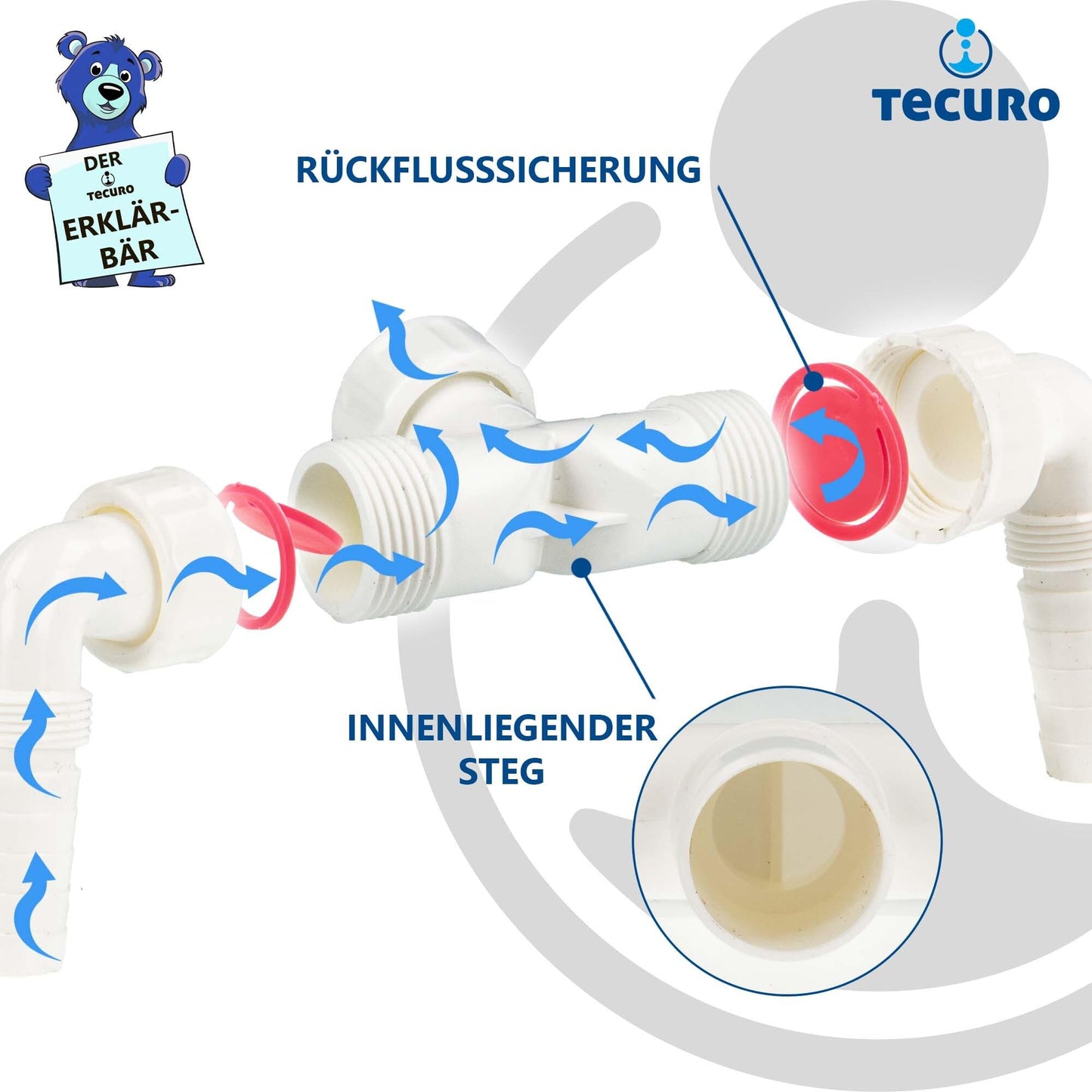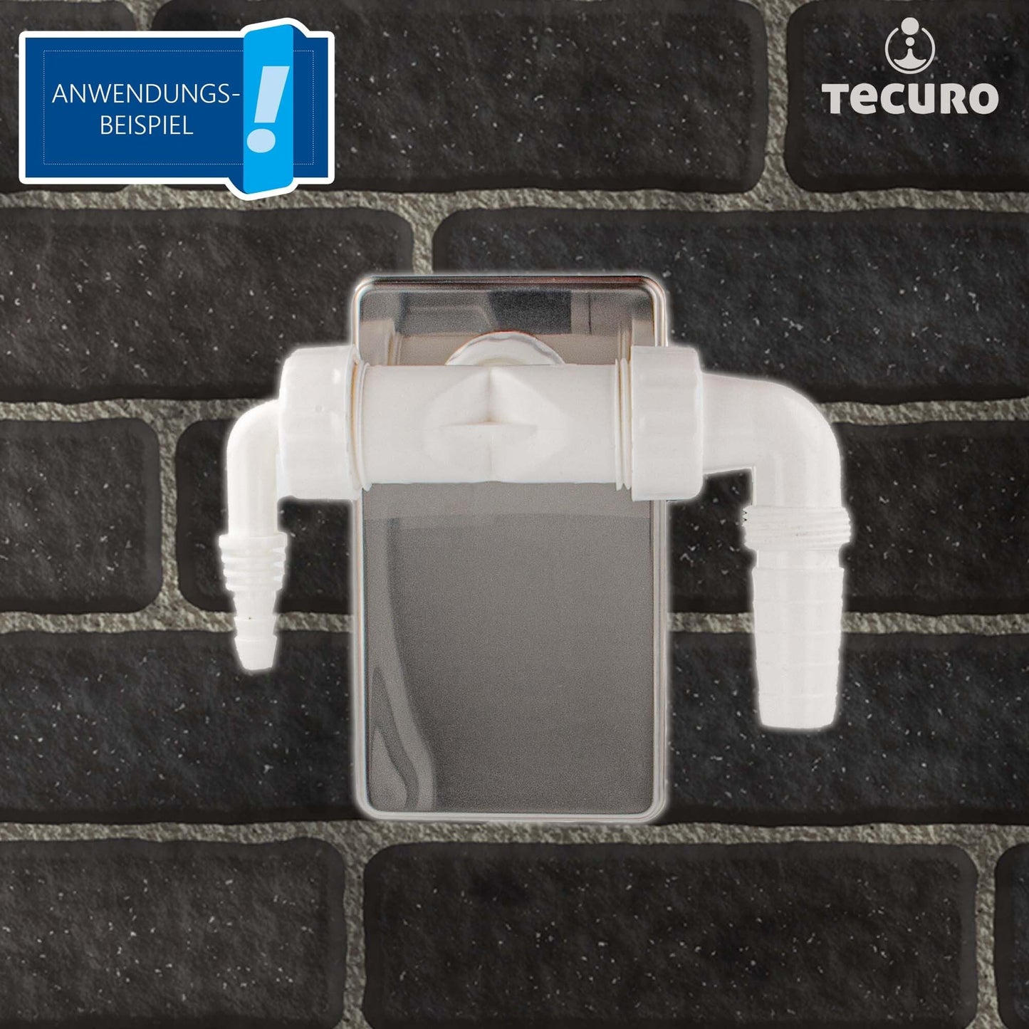 Der tecuro Doppelanschluss ermöglicht den gleichzeitigen Anschluss von Waschmaschine und Trockner und sorgt für einen sicheren Wasserabfluss. Dank robuster Kunststoffkonstruktion und Rückflusssicherung wird Rückstau verhindert und die Installation zuverlässig abgedichtet.
