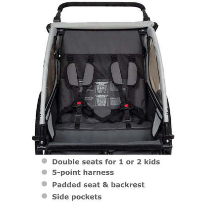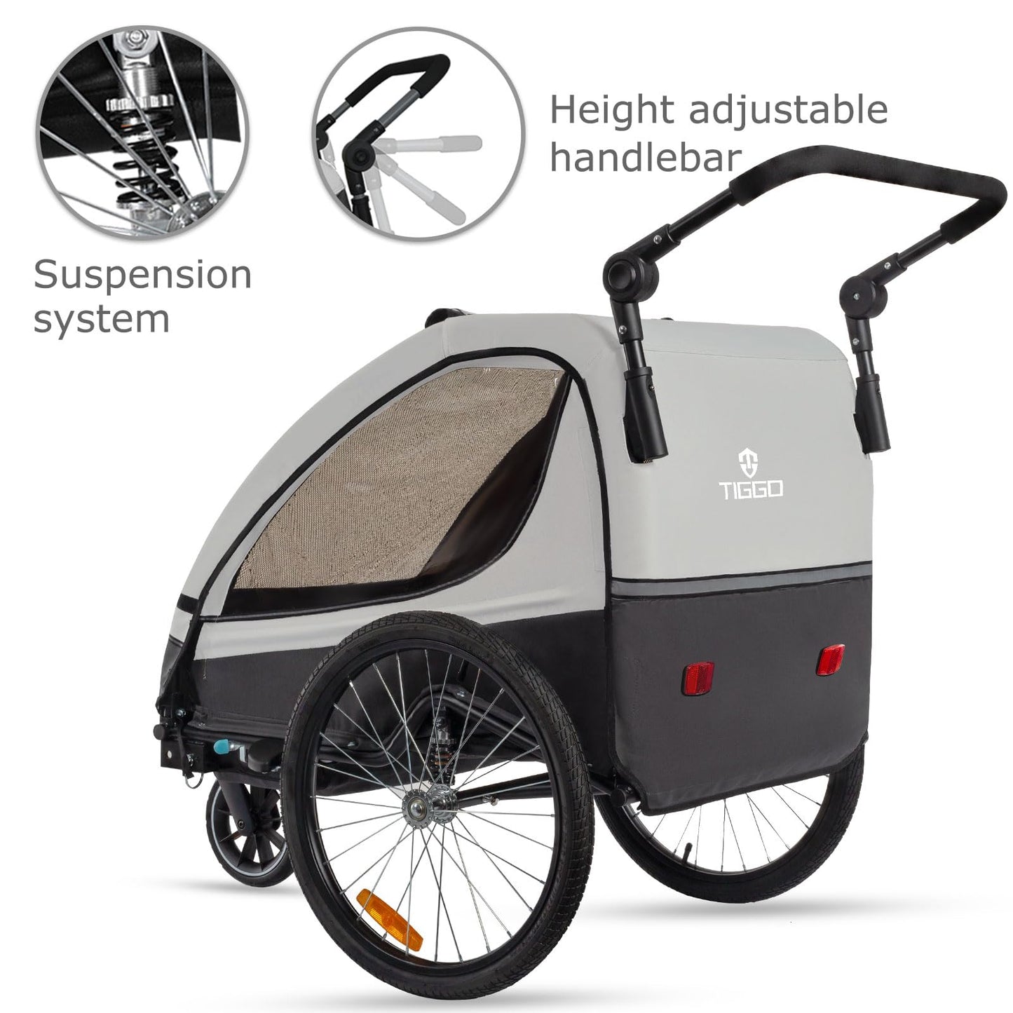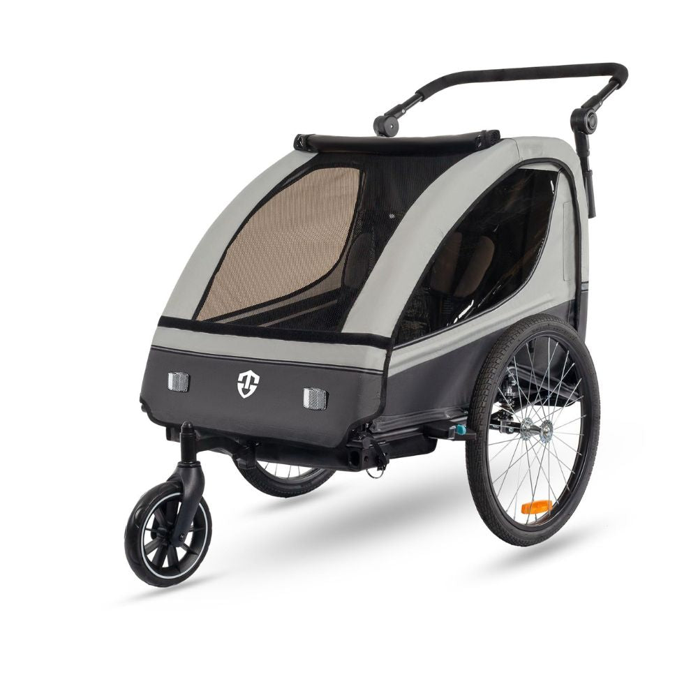 Tiggo 2-in-1 Fahrradanhänger mit Buggy-Set: 360° Drehbar mit Federung - max. 40kg (Grau)