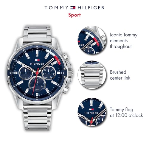 Tommy Hilfiger (1791788) Multi-Zifferblatt Quarz Uhr für Herren mit silbernes Edelstahlarmband