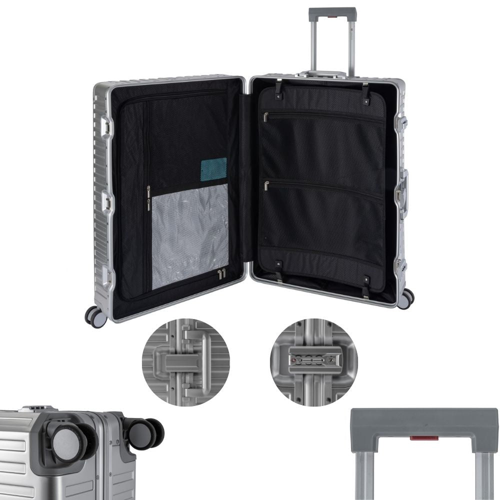 TRAVELHOUSE 'Tokyo' Hartschalen-Aluminium Reisekoffer (XL-78cm) : 2x TSA-Zahlenschloss | Silber