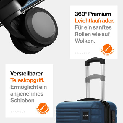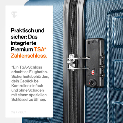 TRAVELY Polycarbonat Reisekoffer XL (77cm - 100 Liter) mit sanften Rollen & TSA Schloss