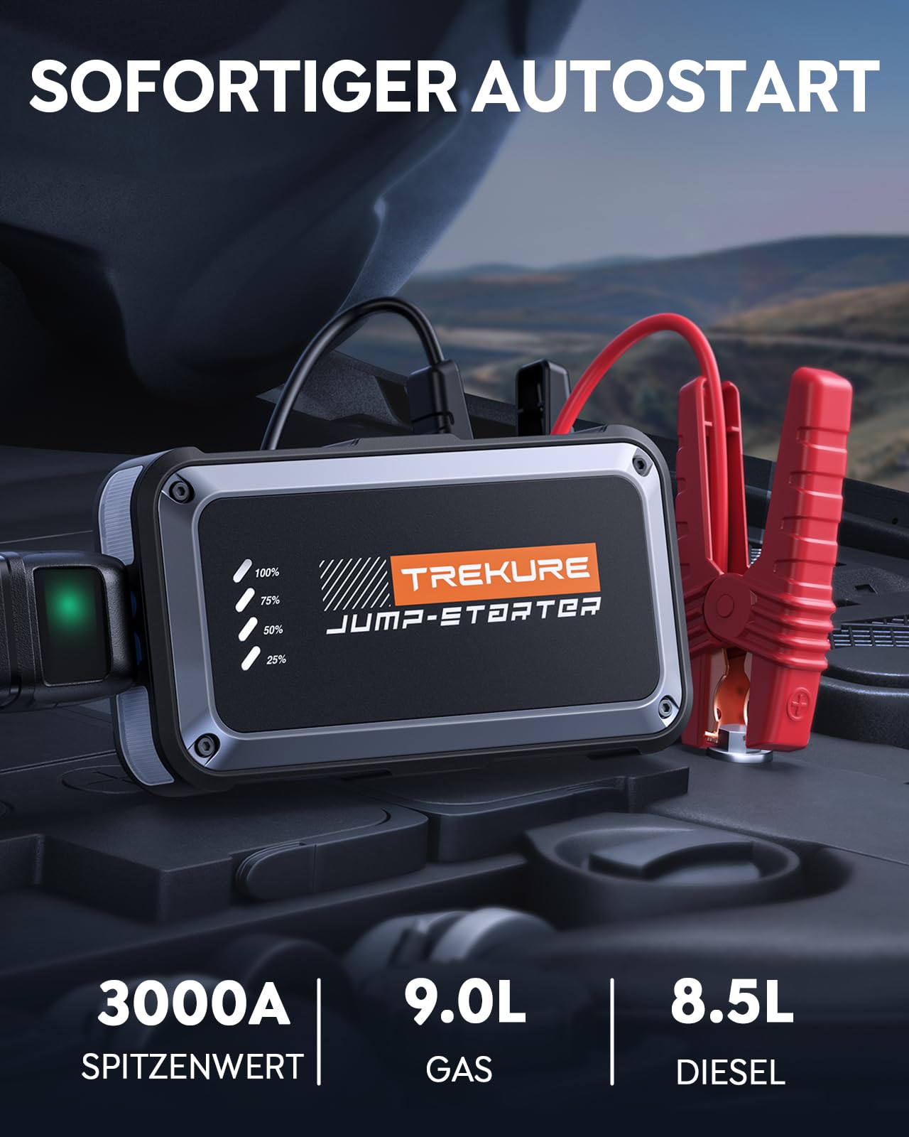 TREKURE TK10 Starthilfe-Powerbank für Pkw (3000A) mit LED Taschenlampe