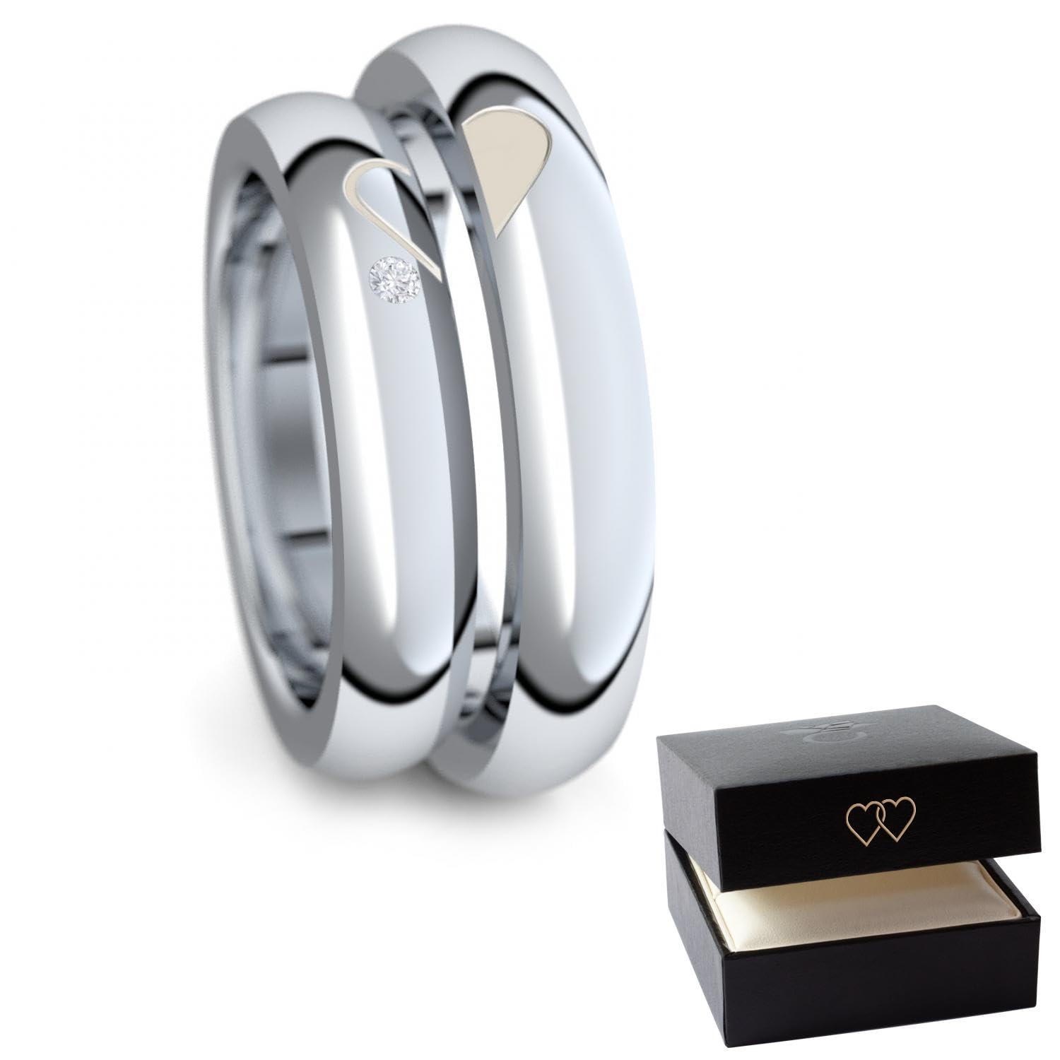 AMOONIC Verlobungsringe (Paar) Silber 925 mit Zirkonia 'GRATIS Etui mit 2 Herzen' (Weißgold-Platin Optik)
