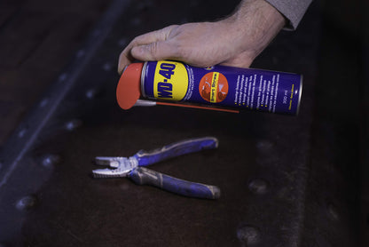 WD-40 Multifunktionsprodukt mit Smart Straw - Das ideale Pflege- und Wartungsprodukt für Ihre Werkzeuge und Geräte. Mit der innovativen Smart Straw-Technologie können Sie das Produkt sowohl punktgenau als auch großflächig sprühen, ohne Tropfen zu hinterlassen. Perfekt für schwer erreichbare Stellen und umfangreiche Beschichtungen. Es schmiert, schützt, verdrängt Feuchtigkeit und entfernt Schmutz auf Gummi, Metall und Kunststoff. Frei von Silikon, Harz und PTFE, bietet es eine langanhaltende, zuverlässige Leistung.