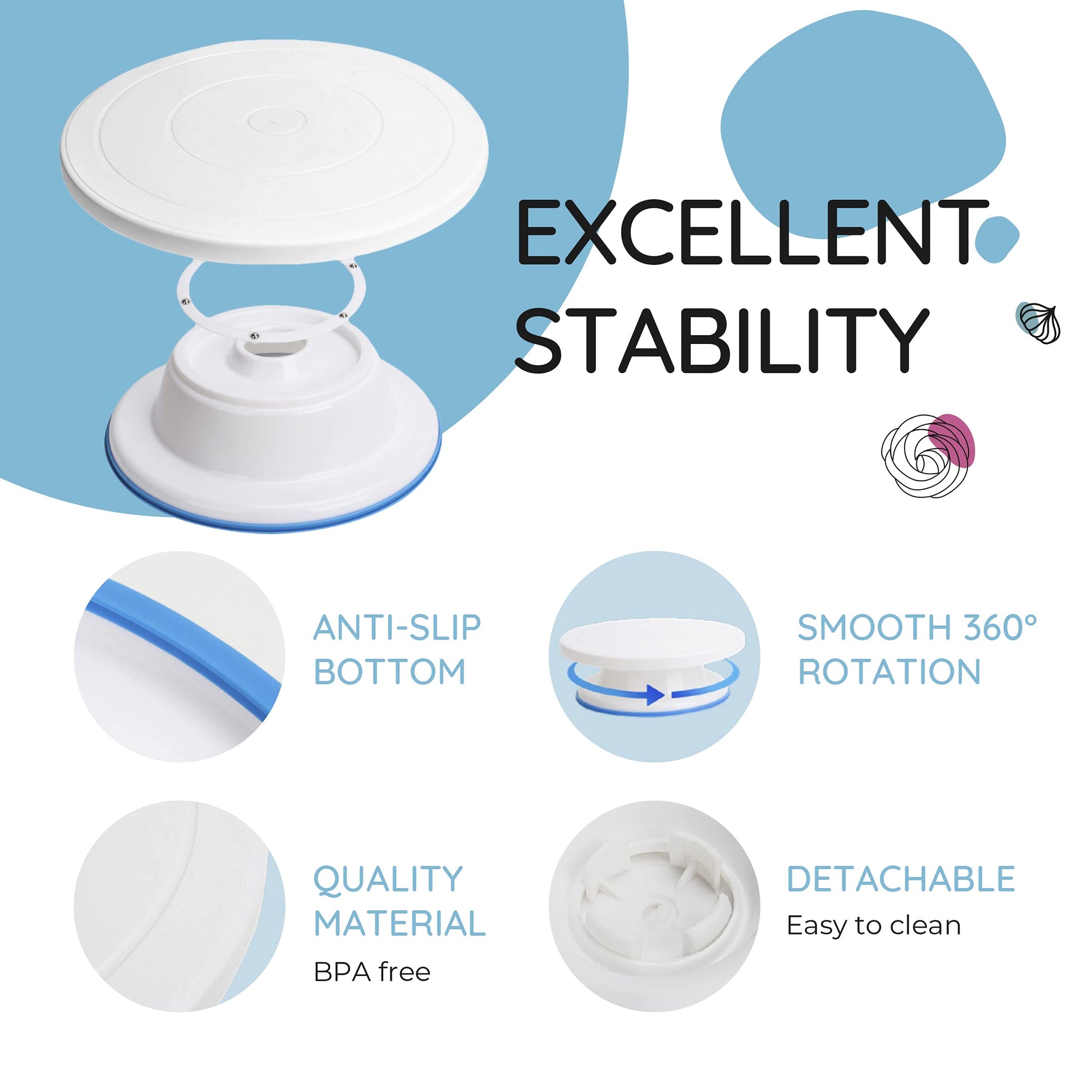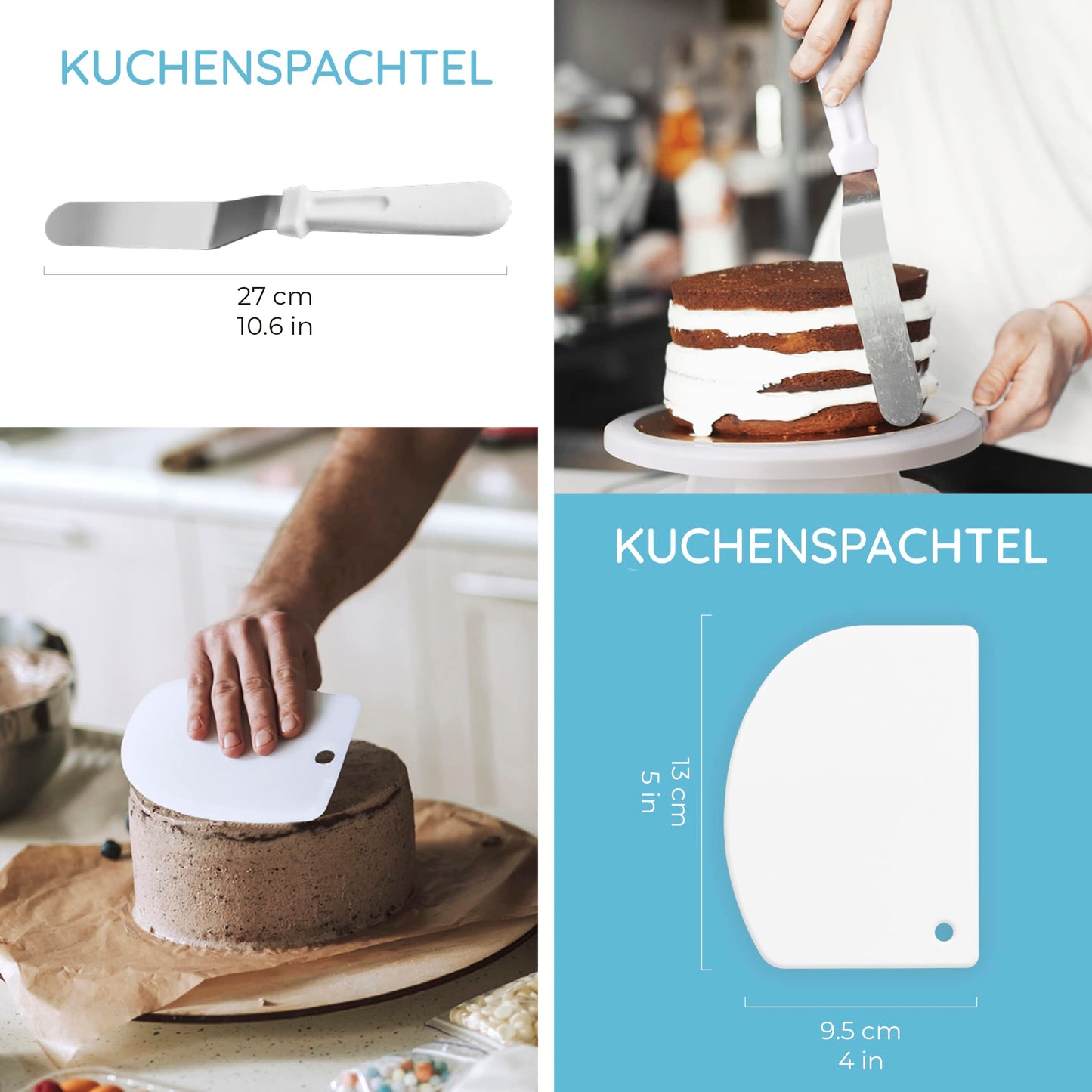 Vielseitiges Set: 51-teiliges Torten Set mit einer 360° drehbaren Tortenplatte, ideal für präzises Dekorieren