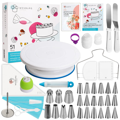 Das Wenburg 51-teilige Torten Set ist das perfekte Zubehör für die Dekoration von Torten bei jedem besonderen Anlass wie Hochzeiten oder Geburtstagsfeiern. Mit einer Vielzahl an Werkzeugen und praktischen Funktionen verwandelt dieses Set Ihre Torte in ein Meisterwerk.