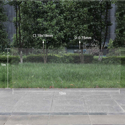 WILTEC Maschendrahtzaun mit 19x19mm Drahtstärke: (1m x 10m x 0,75mm): Volierendraht 4-Eck aus Stahl verzinkt