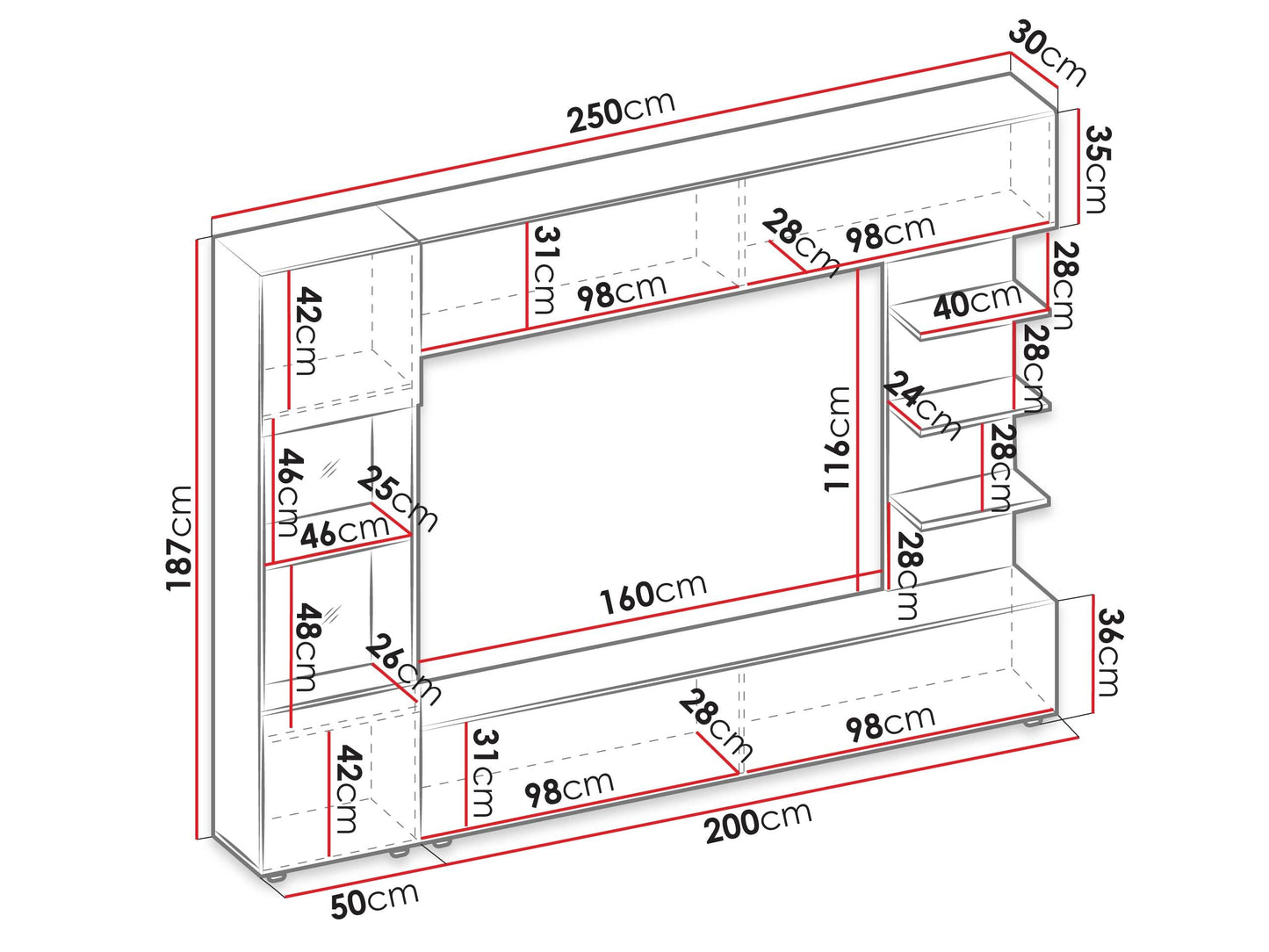- Maße (gesamt): B 250 × H 187 × T 30cm - flexibel montierbar, Vitrine und Regal beidseitig einsetzbar