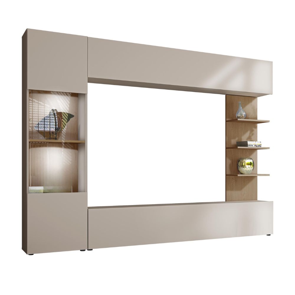Stilvolles Set mit Hängeschrank, Vitrine, TV-Lowboard & Wandregal