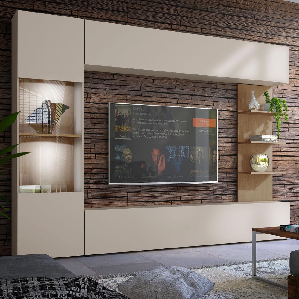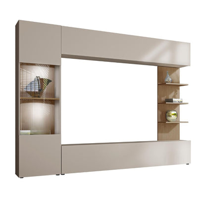 Wohnwand 'Lazando' | Mediawand, Vitrine, TV-Wand mit weißer LED Beleuchtung